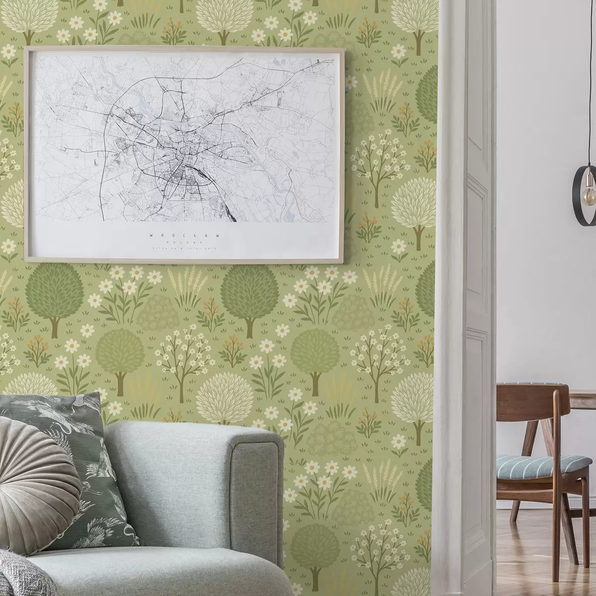 Tapet Grădina verde a copiilor: copaci, flori și grâu Nr. a00586