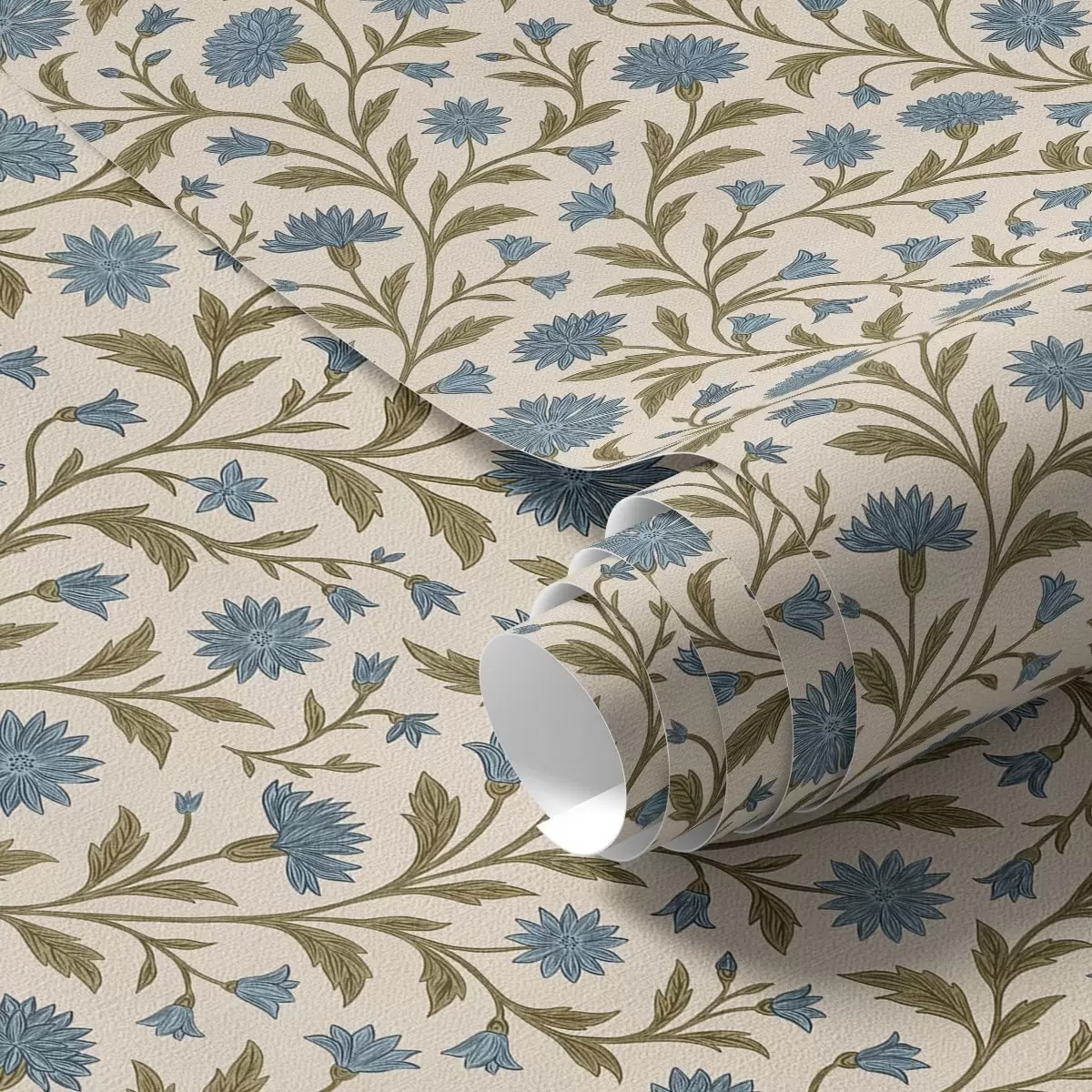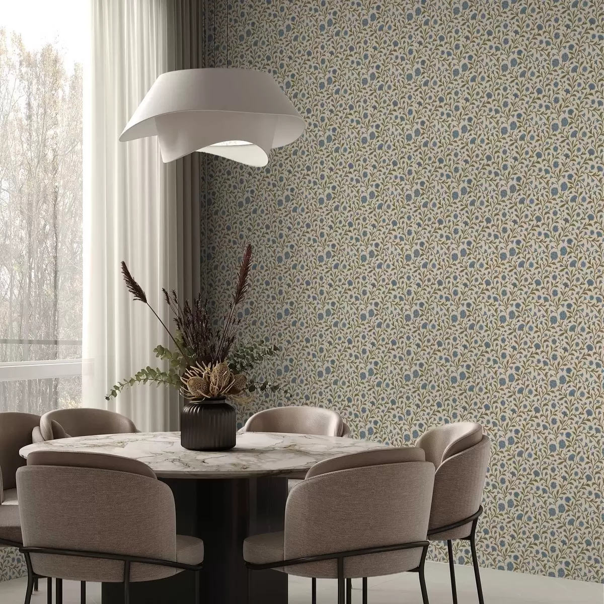Tapet Flori de albăstrea și lăstari pe fond bej Nr. a00588