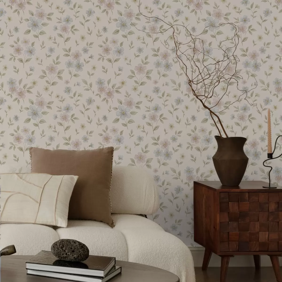 Tapet Flori pastelate de câmp pe fond crem Nr. a00596