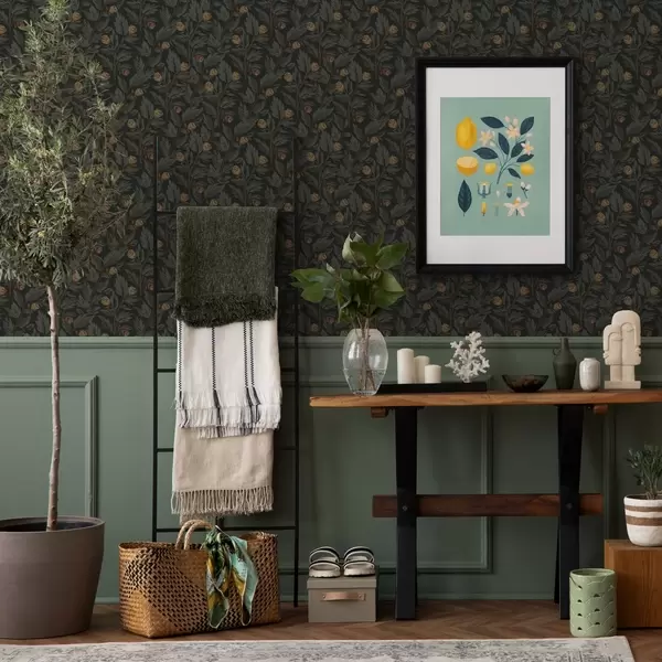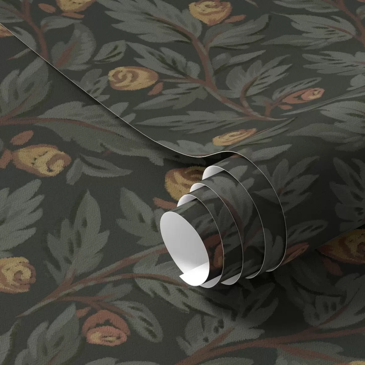 Tapet Model floral închis la culoare, cu muguri și frunze galbene Nr. a00598