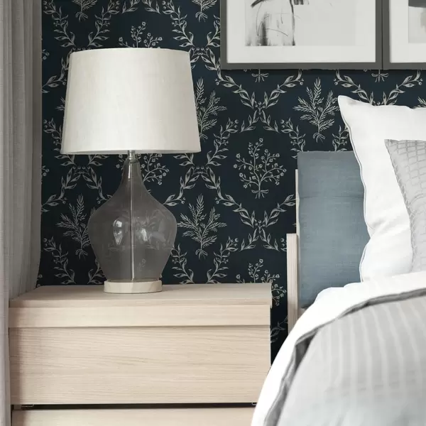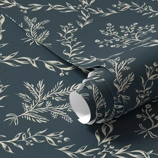 Tapet Coroane albe din ierburi și flori pe fond verde-albastru închis Nr. a00599v2
