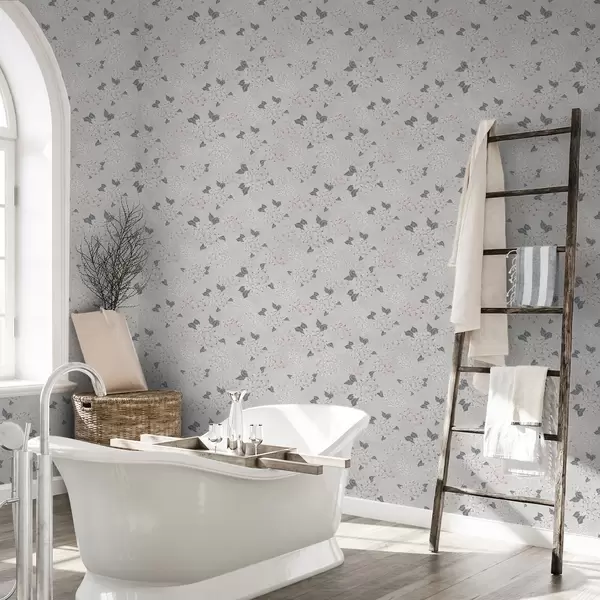 Tapet Flori aerisite pe un fundal deschis, în nuanțe delicate de roz-gri Nr. a00600