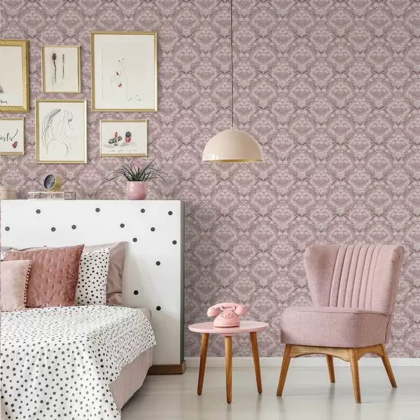 Tapet Damasc roz: bujori, ghiocei și ciorchini dantelati Nr. a00603