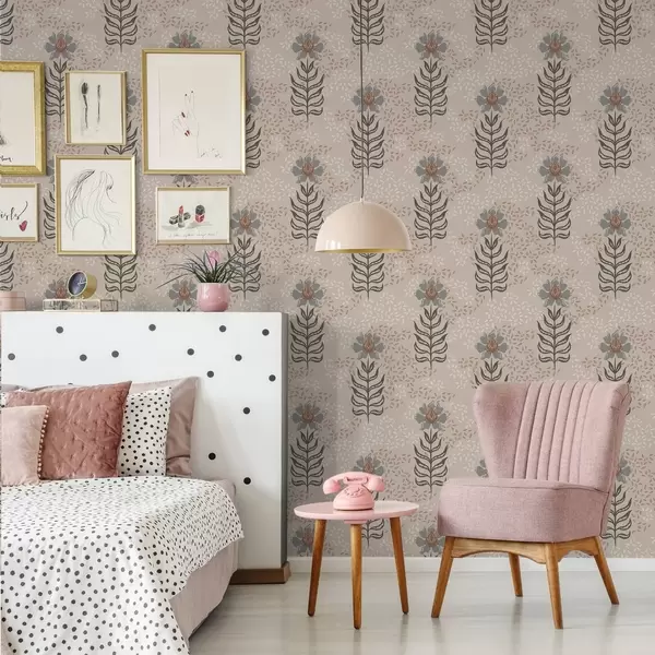 Wallpaper Flori și semințe stilizate pe fond bej cald a00604