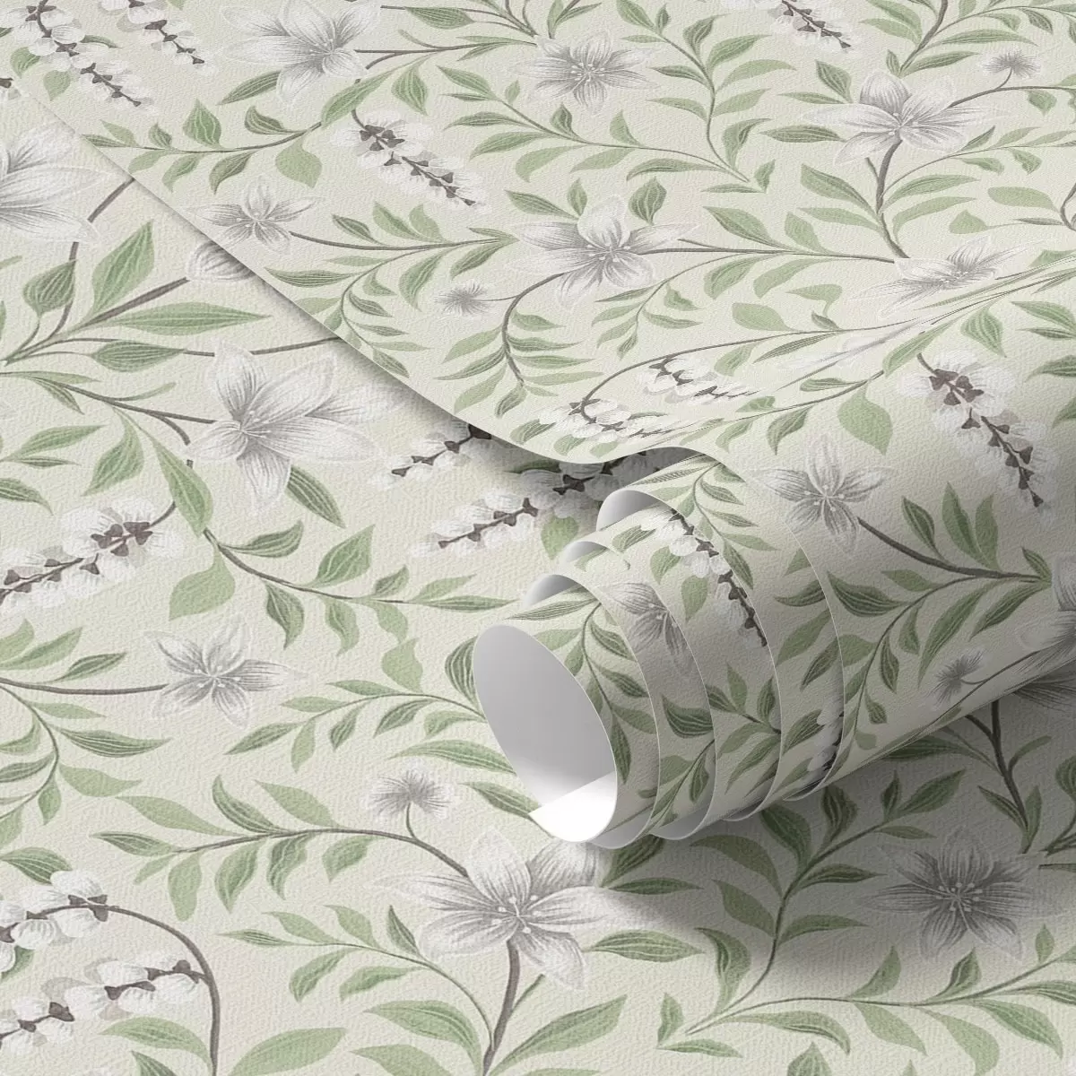 Tapet Ornament ușor din viță de vie cu flori albe, simetric Nr. a00609