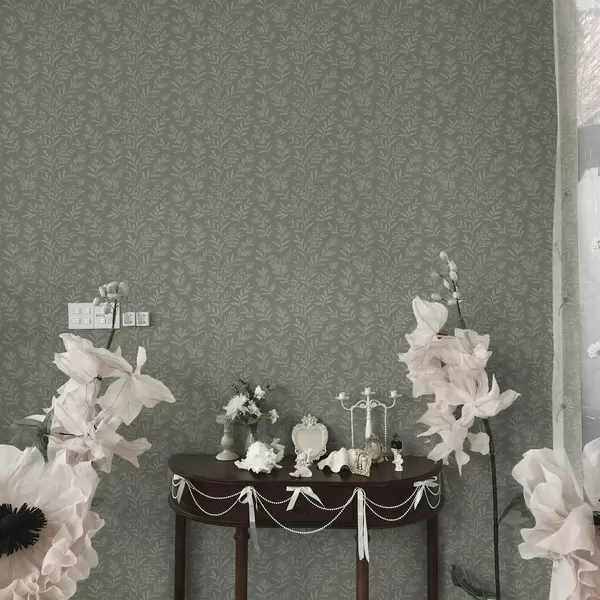 Tapet Salvie verde: ierburi fine și inflorescențe, model delicat Nr. a00611
