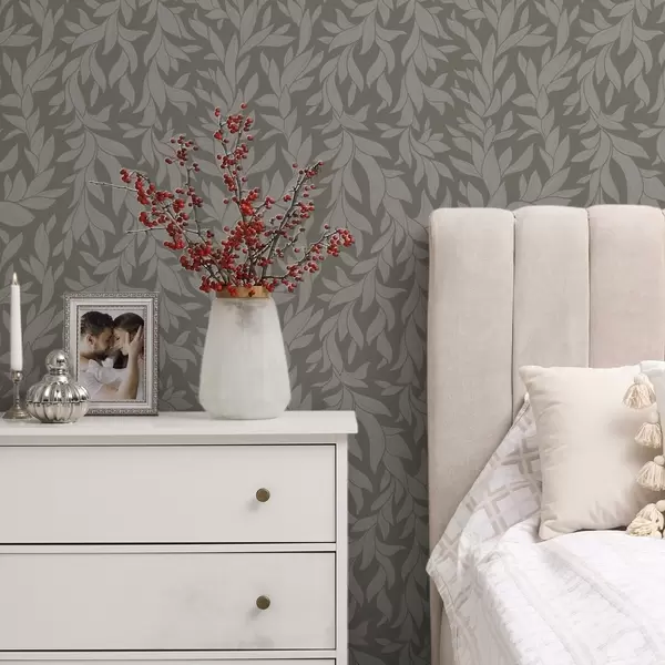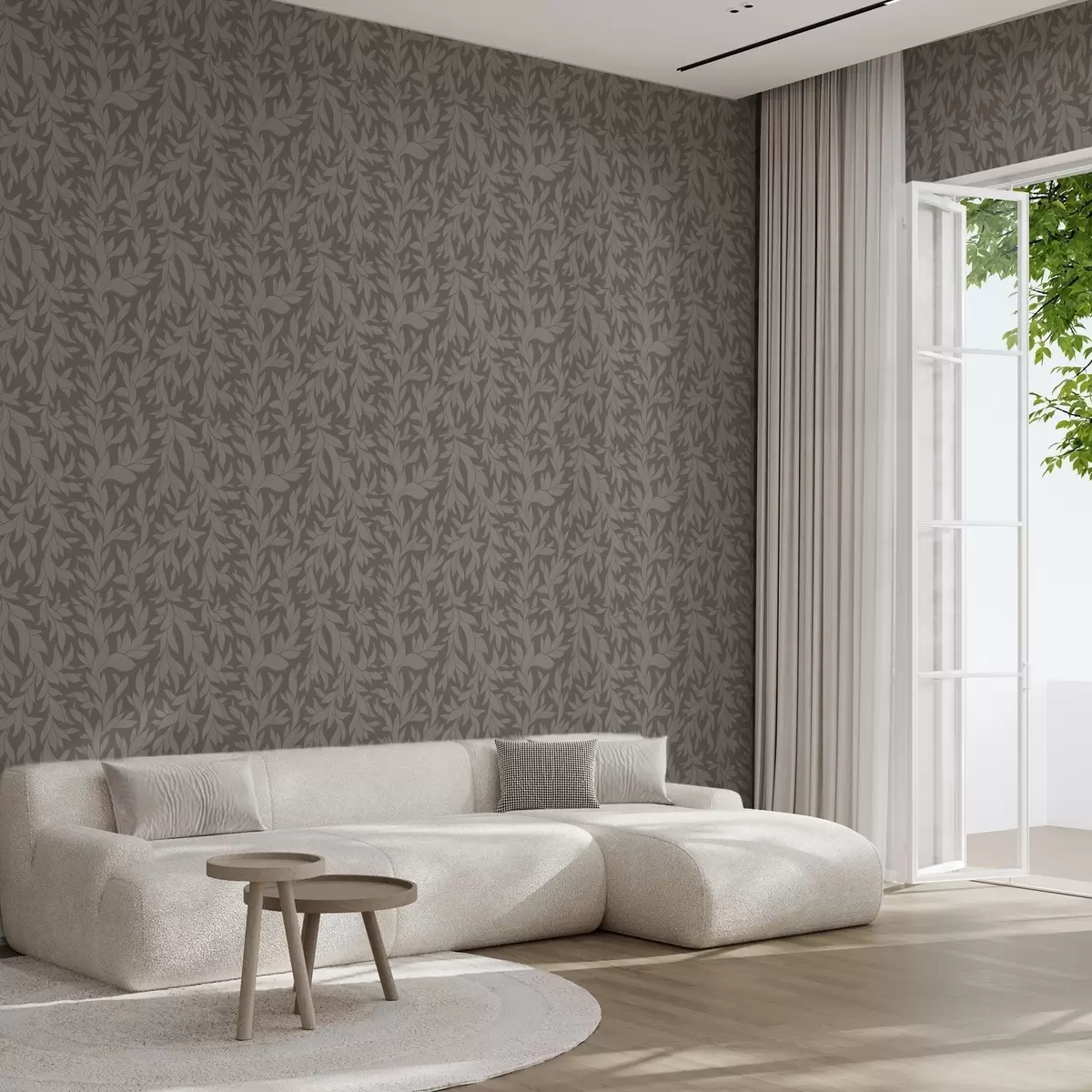 Tapet Fundal verde măslin cu frunze de liliac, textură liniară Nr. a00616v1