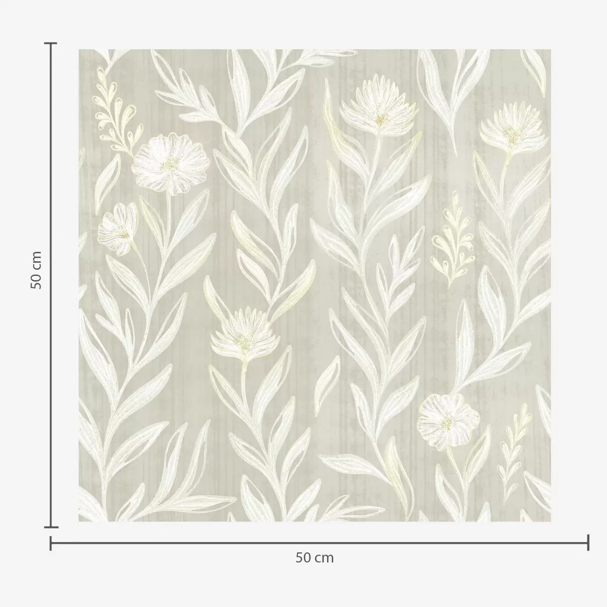Tapet Ierburi și flori ușoare pe fundal bej, linii schițate Nr. a00618