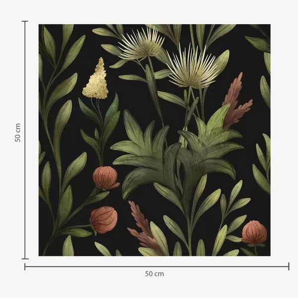 Tapet Ierburi înalte și flori pe fond negru, imprimeu detaliat Nr. a00620