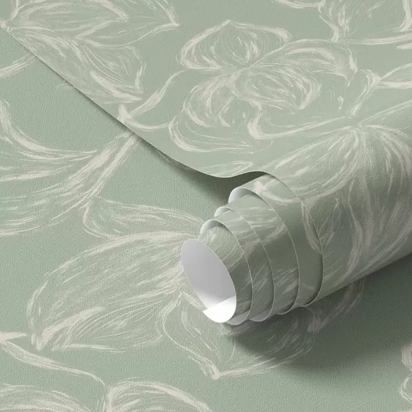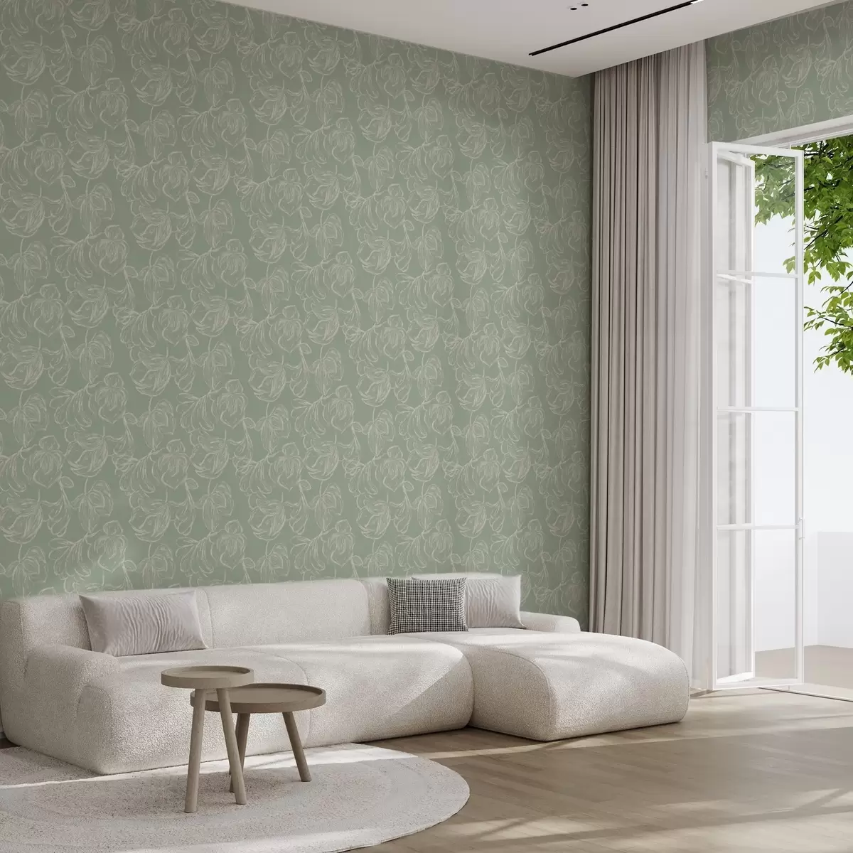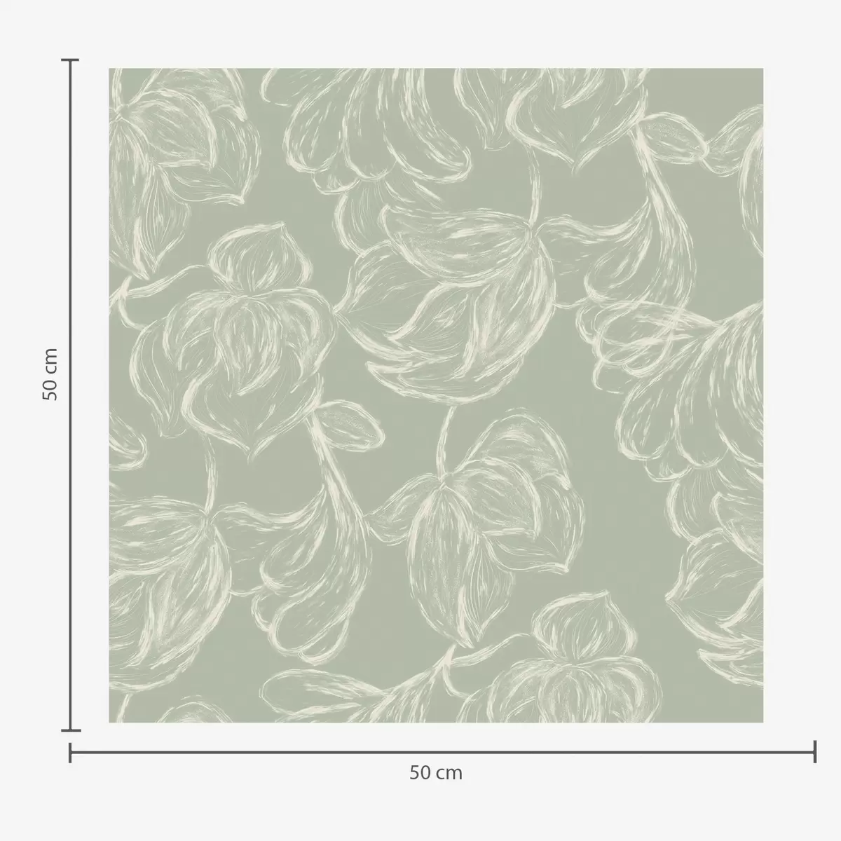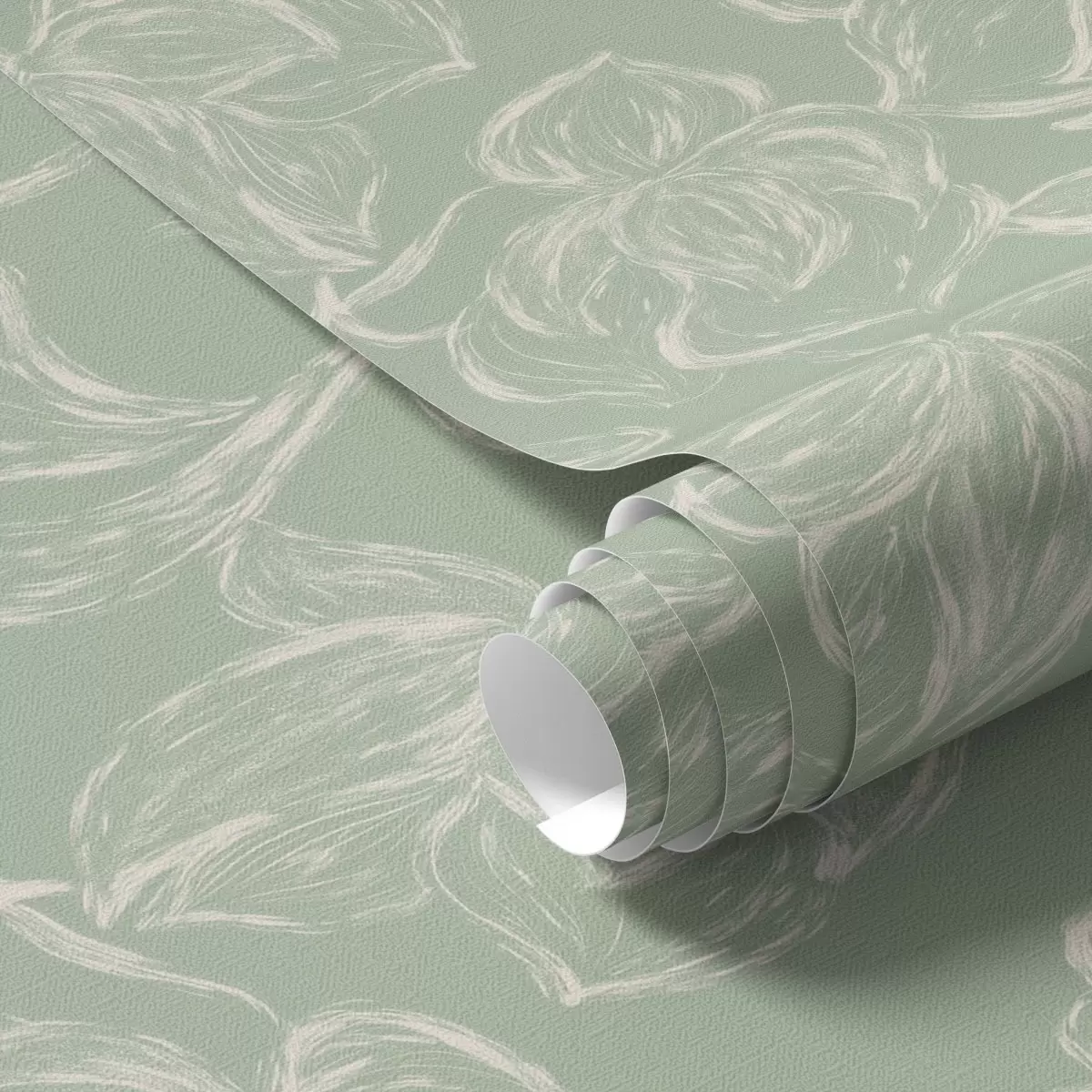 Tapet Flori mari liniare, linii de cretă pe fond salvie Nr. a00625v1