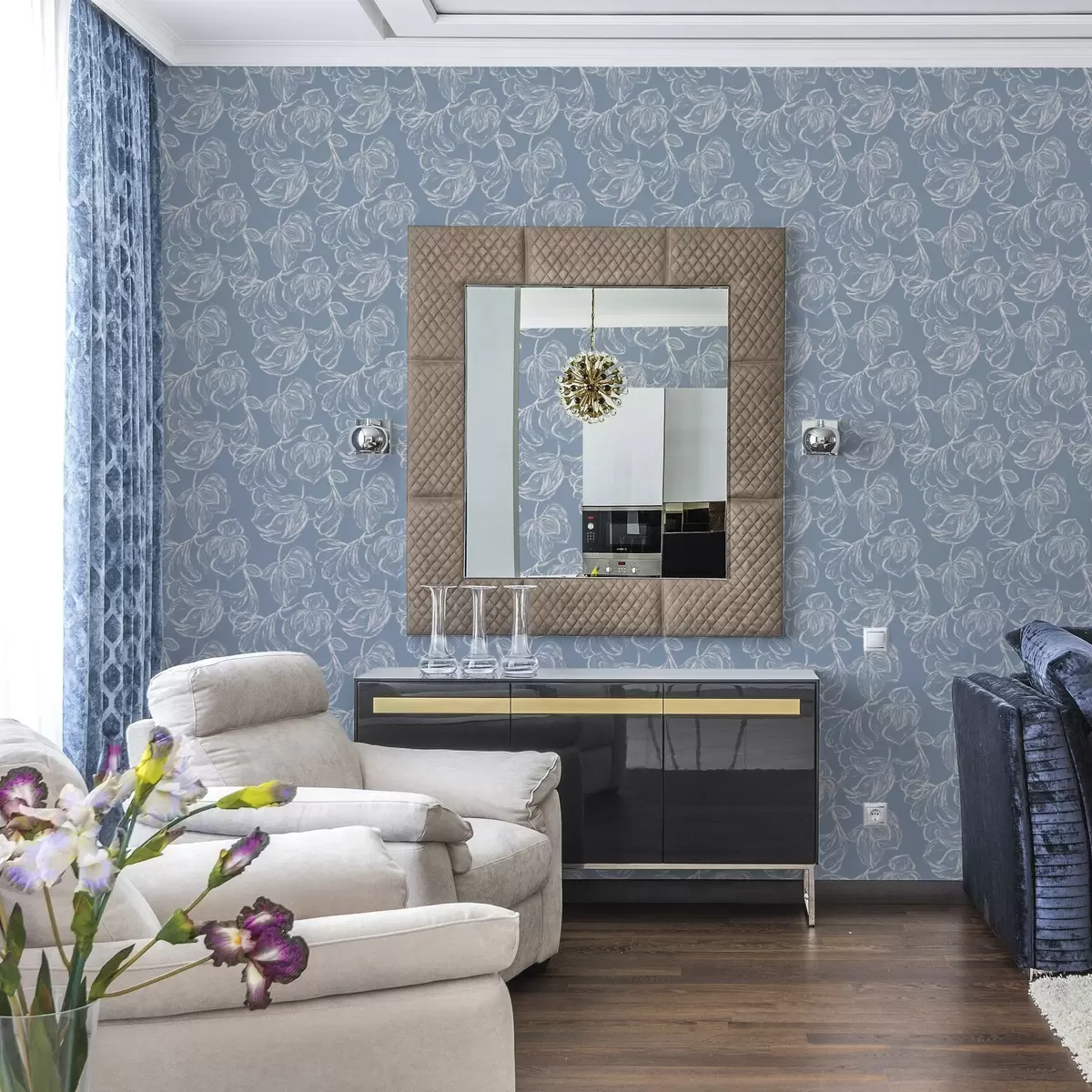 Tapet Fundal albastru deschis cu flori conturate cu cretă Nr. a00625v3