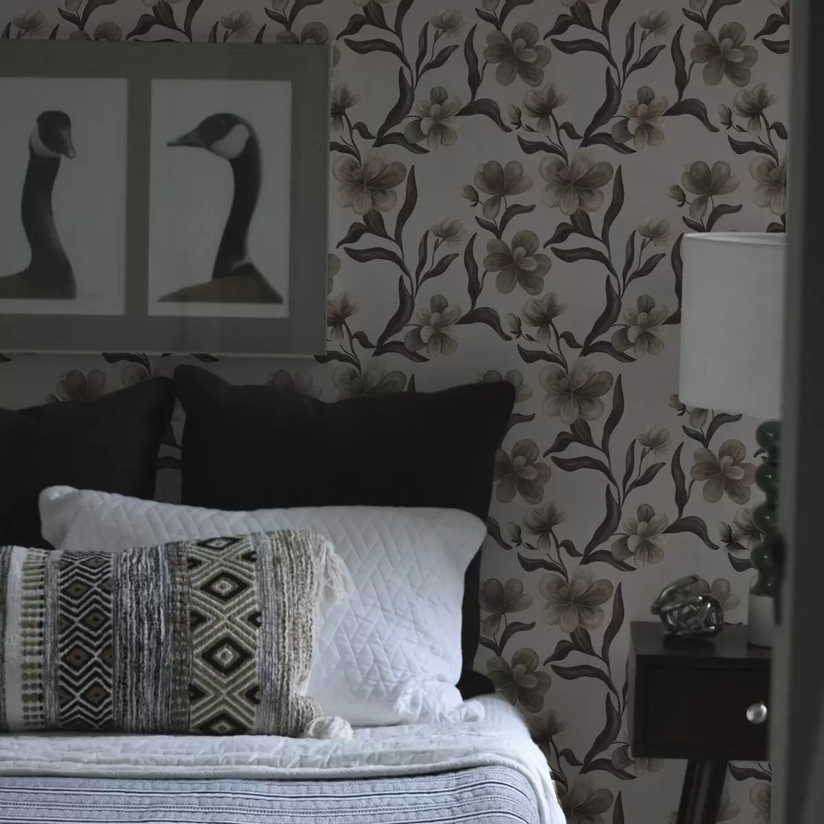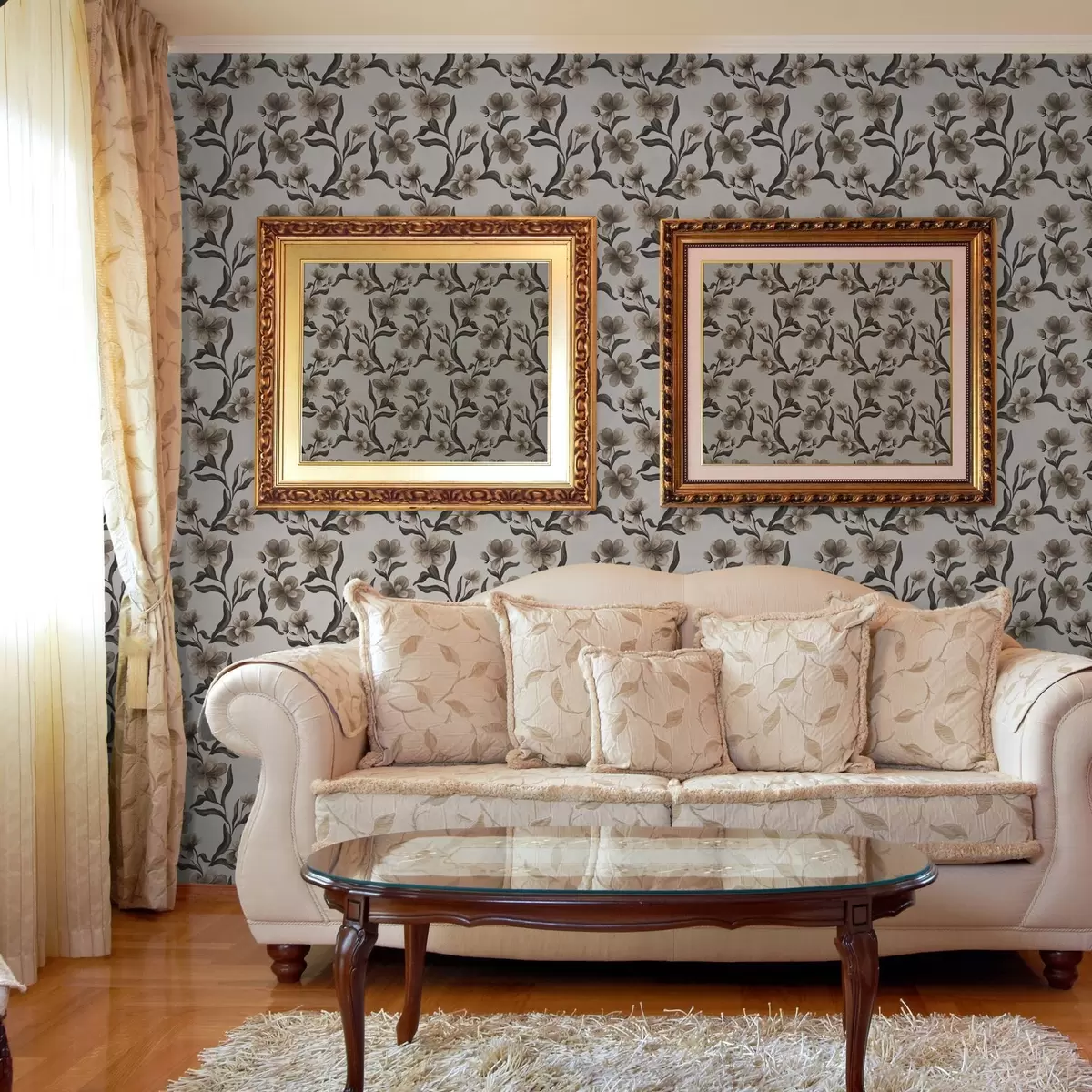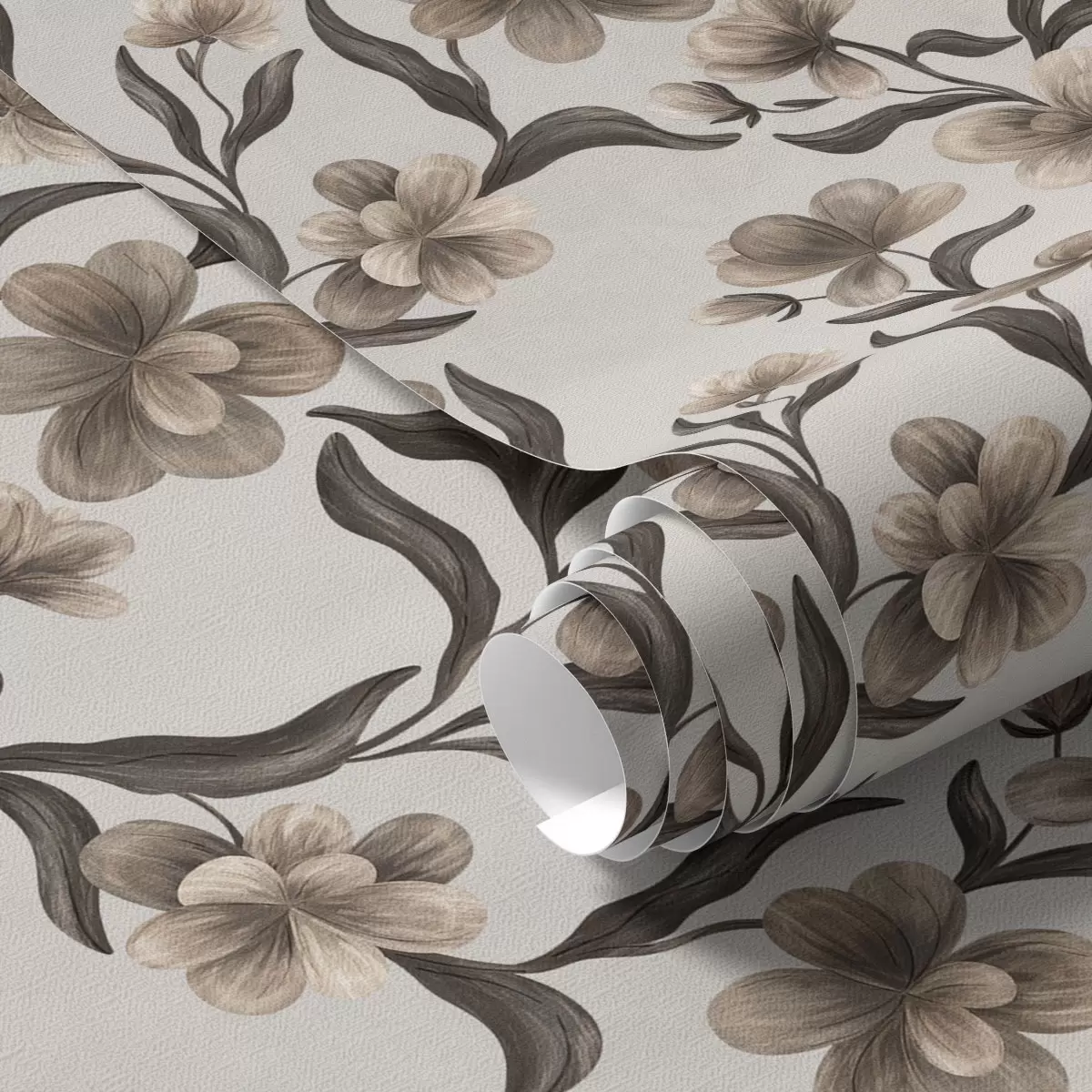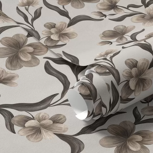 Tapet Flori bej și ramuri întunecate pe un fundal gri deschis Nr. a00626v1