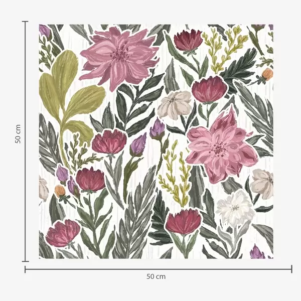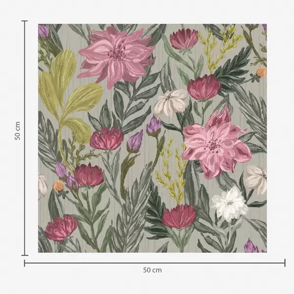 Tapet Flori luxuriante roz și crem pe fond gri, textură impasto Nr. a00629