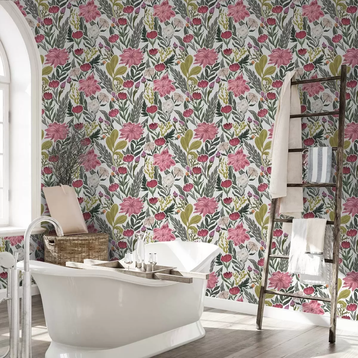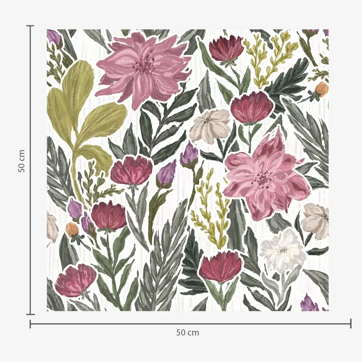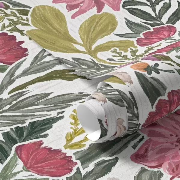 Tapet Flori luxuriante roz și crem pe fond alb, textură impasto Nr. a00629v1