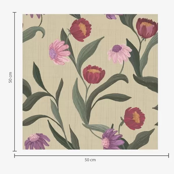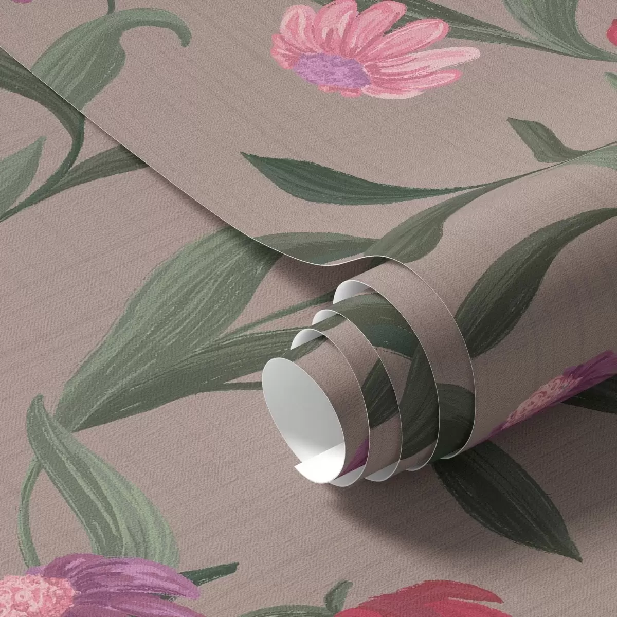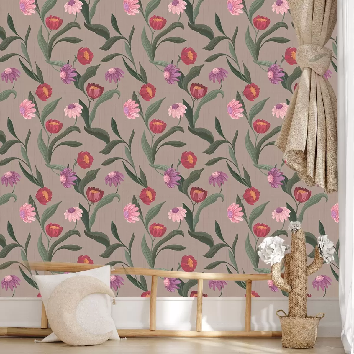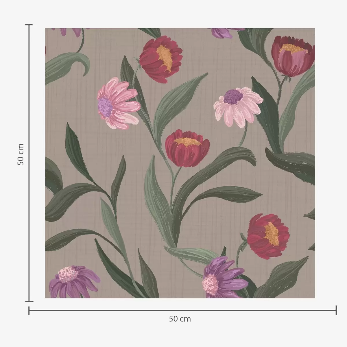 Tapet Flori roz-roșii pe fond gri-maroniu, cu tulpini lungi Nr. a00631v2