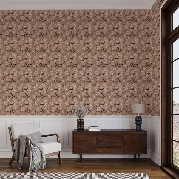 Wallpaper Flori roz și fluturi pe un fundal maro cald a00633v1