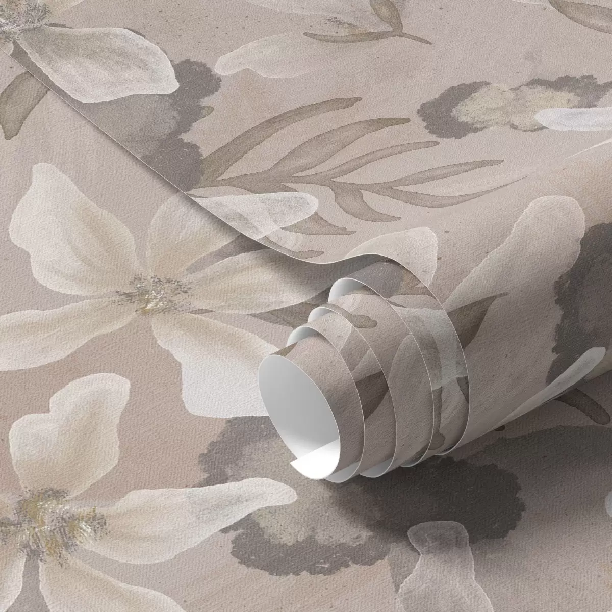 Tapet Flori mari de culoare bej cu pete abstracte de acuarelă Nr. a00635
