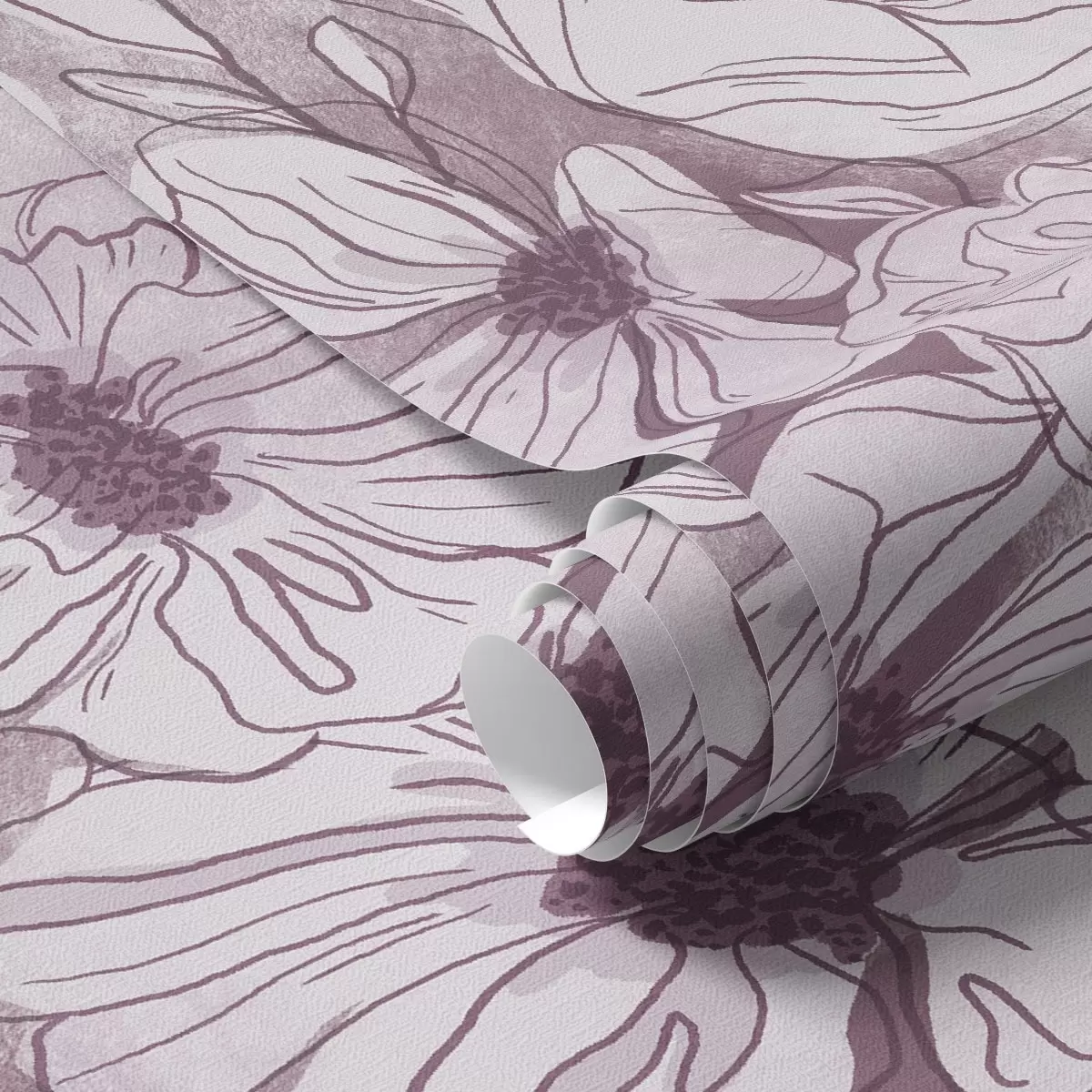 Tapet Flori liniare într-o paletă rece de liliac-roz Nr. a00636v1