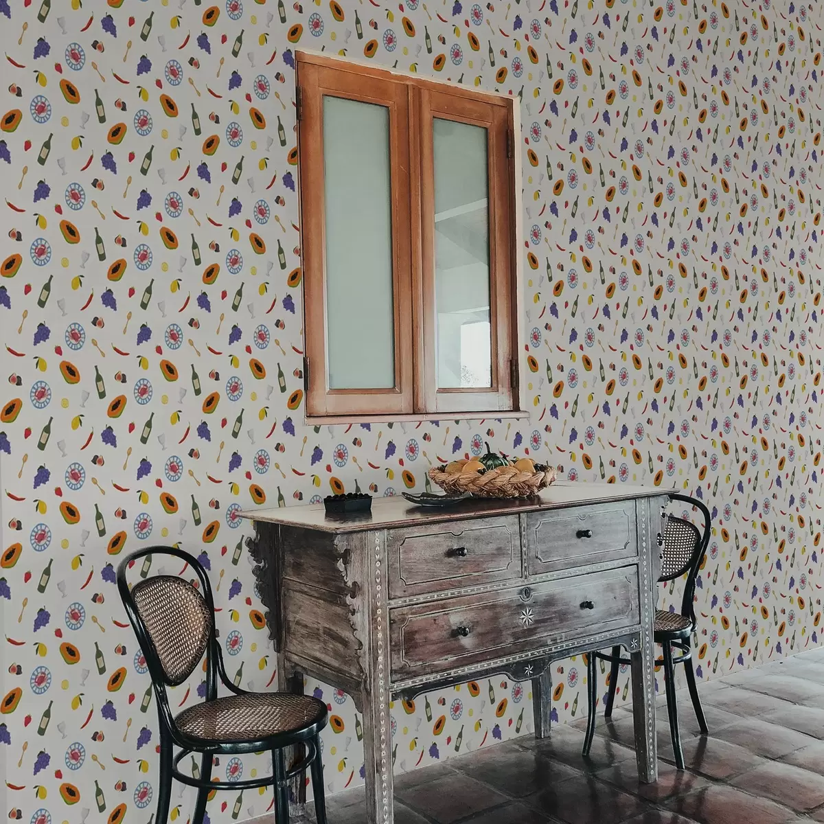 Tapet Fructe aranjate, vin și condimente pe un fundal deschis Nr. a00639