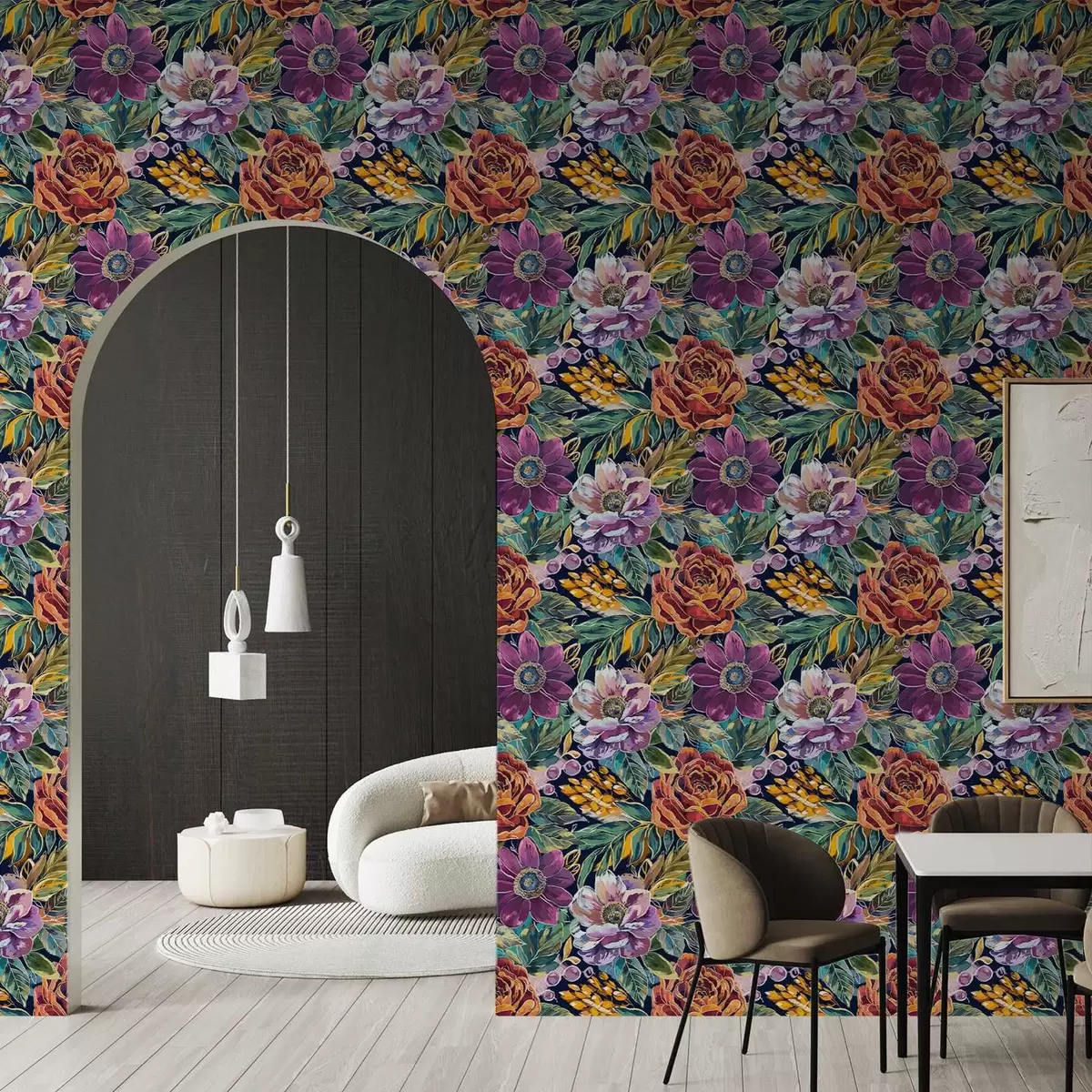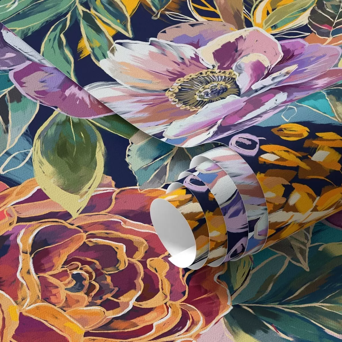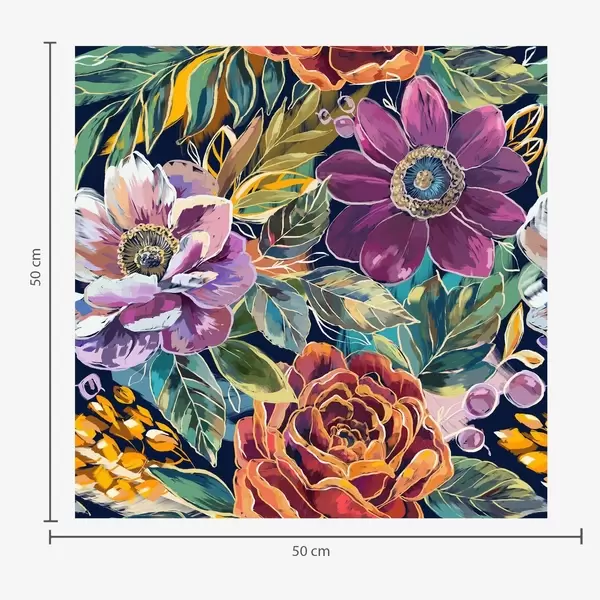 Tapet Flori mari, pictate cu pensula, pe un fundal albastru închis Nr. a00643