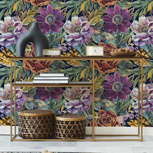 Tapet Flori mari, pictate cu pensula, pe un fundal albastru închis Nr. a00643