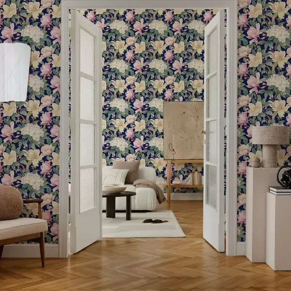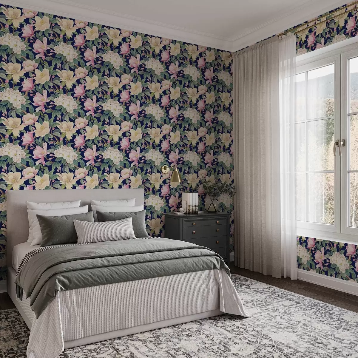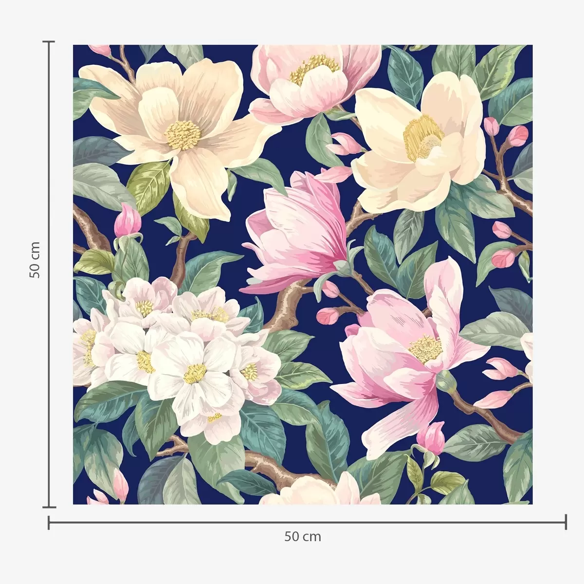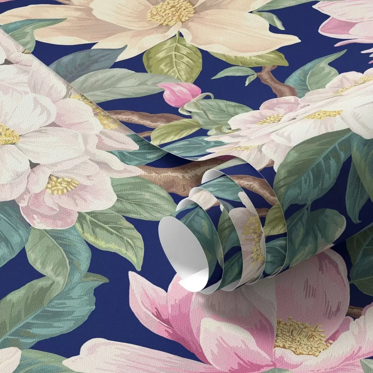 Tapet Magnolii și muguri pe un fundal albastru închis Nr. a00644v1