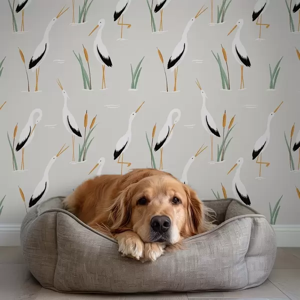 Tapet Stârci printre stufărișuri pe un fundal gri deschis Nr. a00650