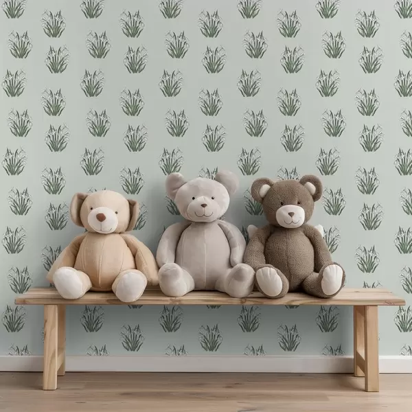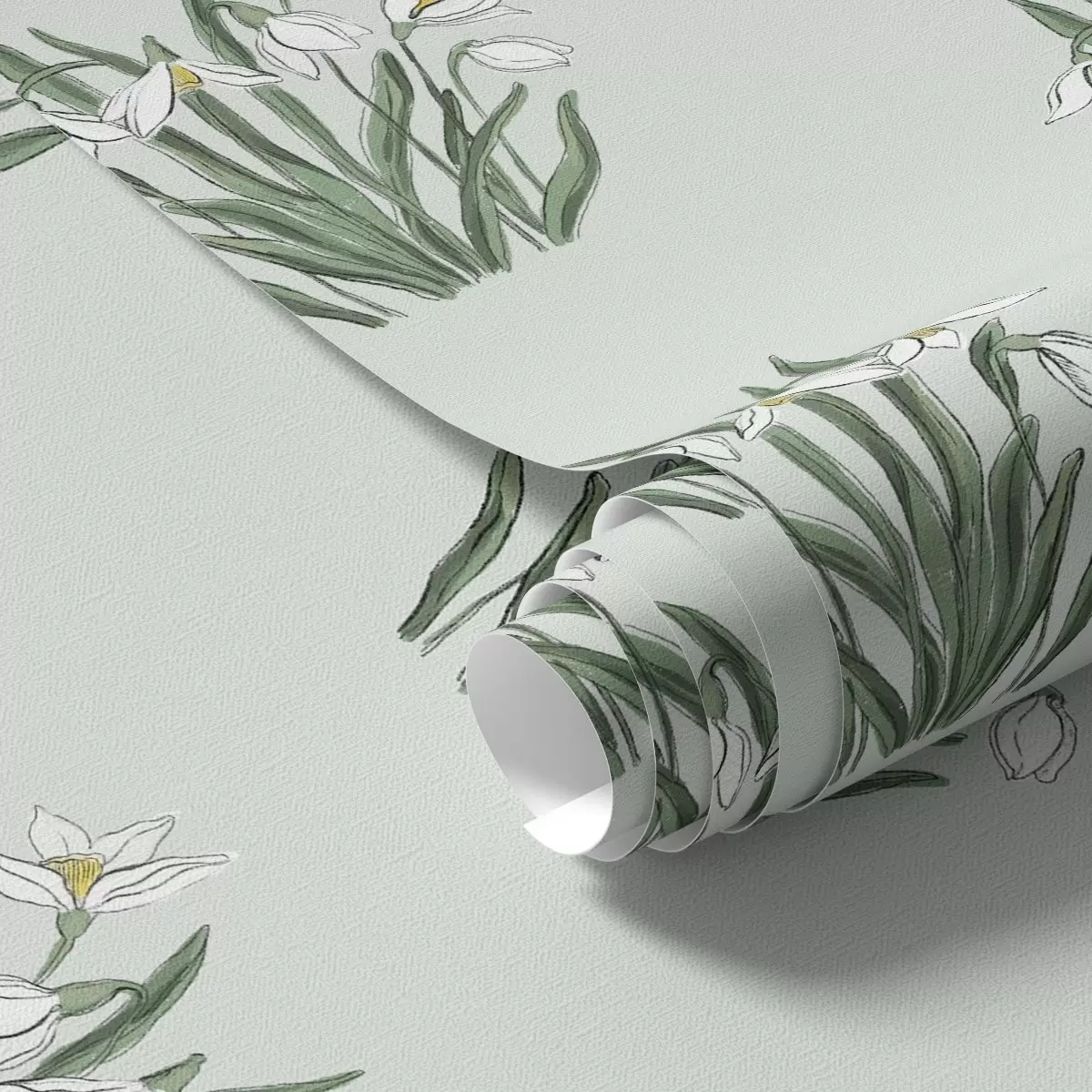 Tapet Ghiocei cu frunze verzi pe un fundal verde pastelat Nr. a00651