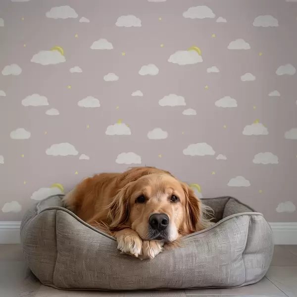 Tapet Nori moi, stele și soare pe un fundal gri-rozaliu Nr. a00652v2