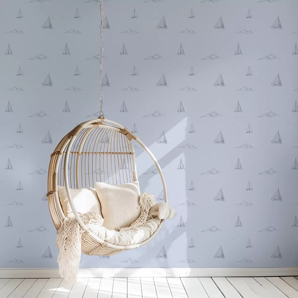 Tapet Schițe de iahturi și insule, fundal albastru Nr. a00654v3
