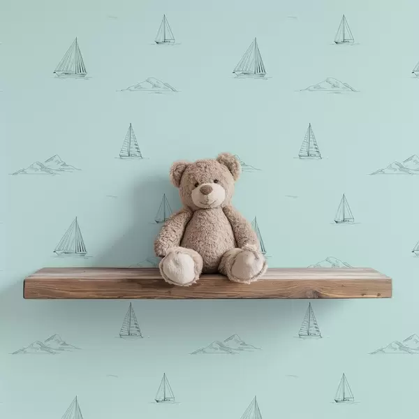 Tapet Schițe de iahturi și insule, fundal verde mentă Nr. a00654v4