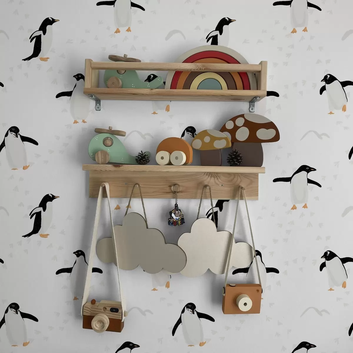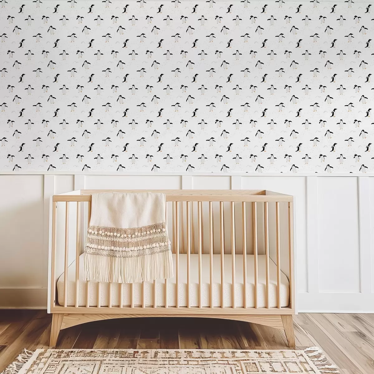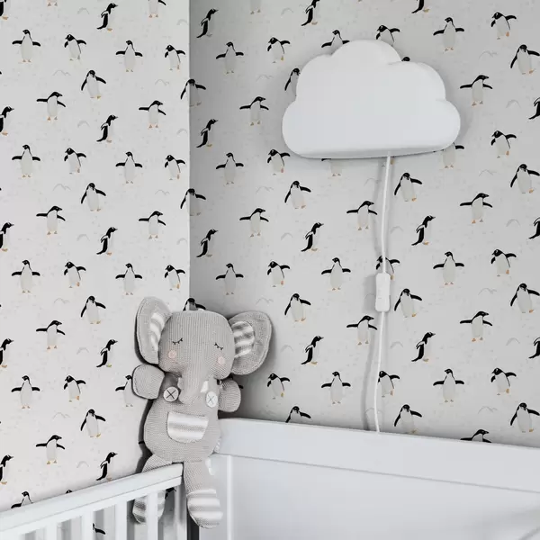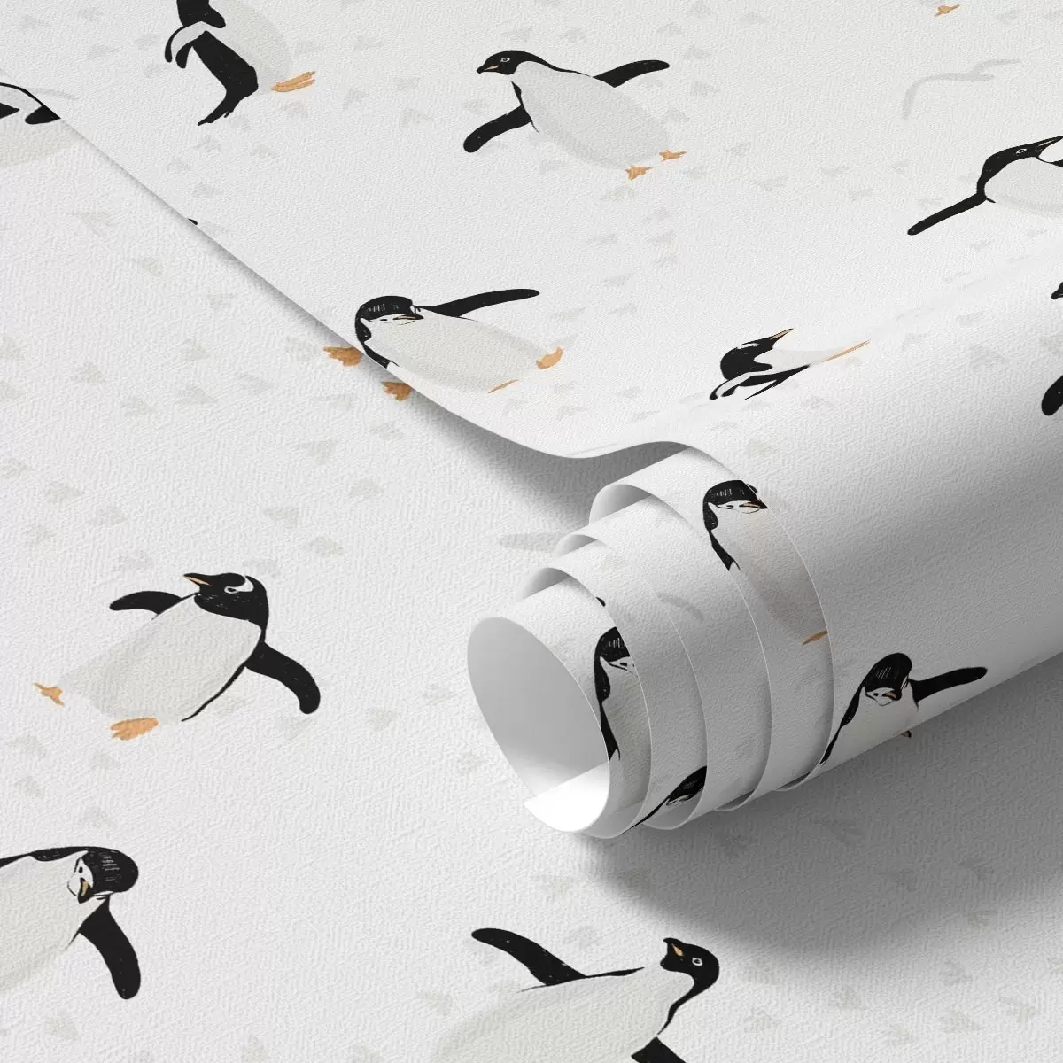 Tapet Pinguini pe fond alb cu urme de pași Nr. a00655v1