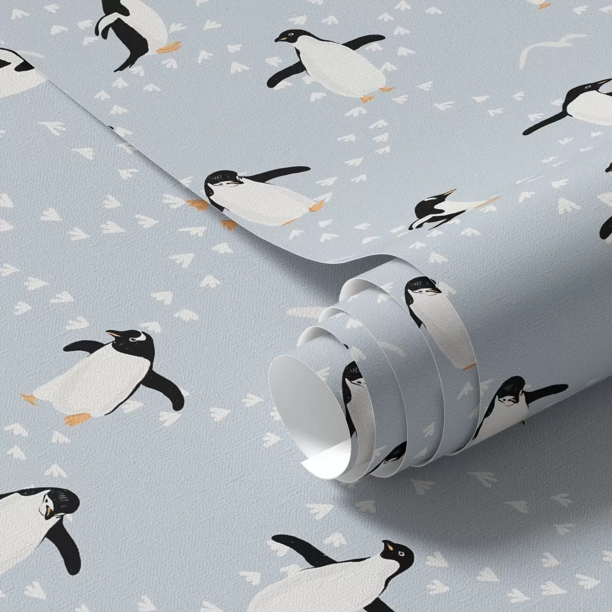 Tapet Pinguini pe albastru deschis, ritmul pașilor Nr. a00655v2