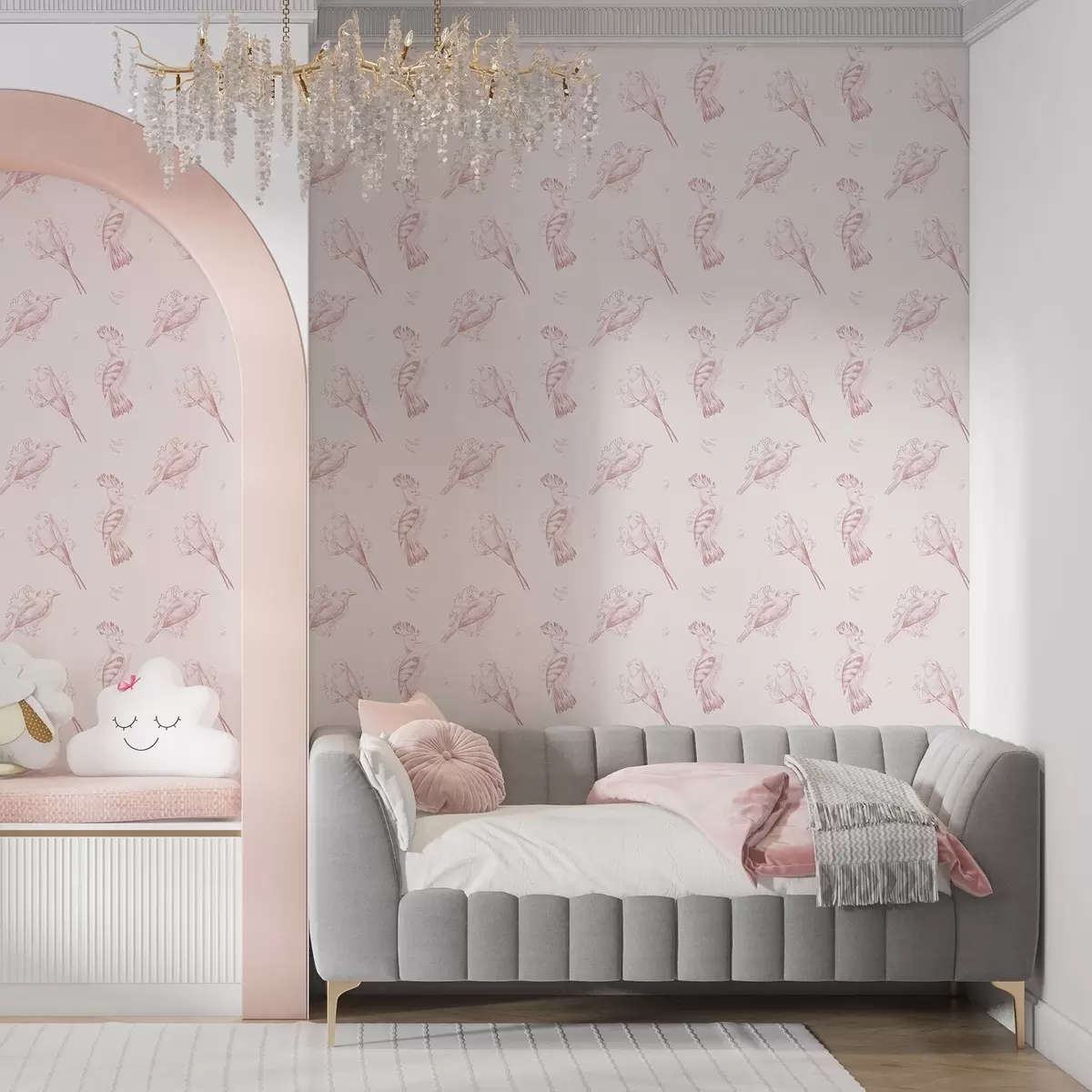 Tapet Toile cu păsări: schițe de păsări, fundal roz pal Nr. a00656