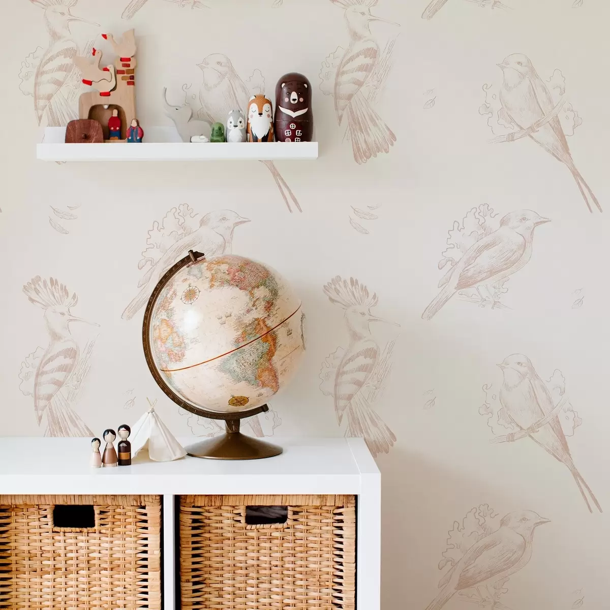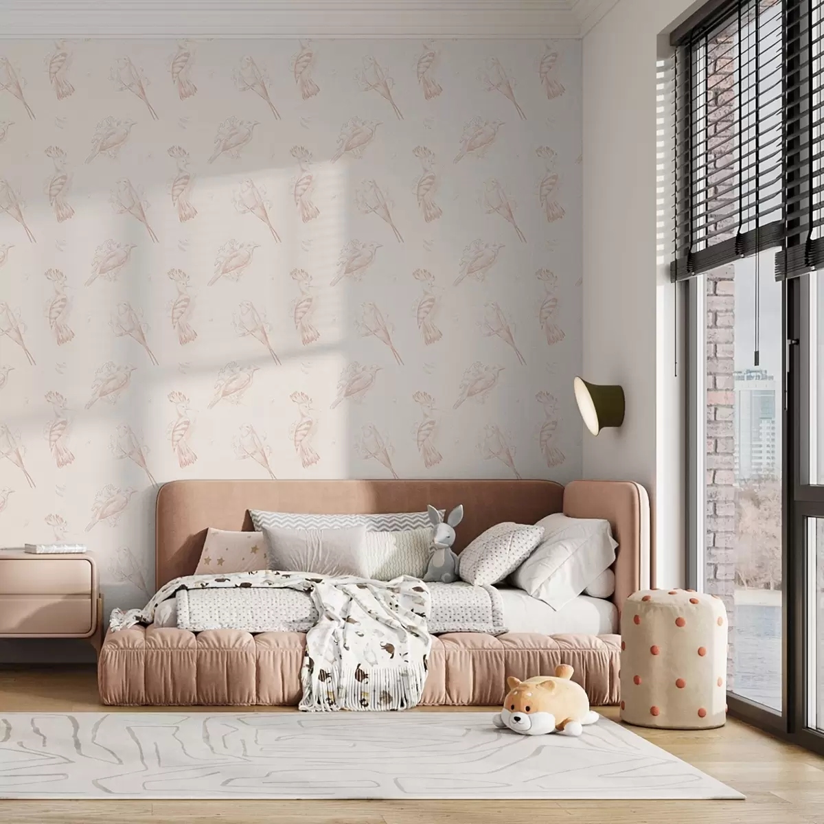Tapet Toile cu păsări: schițe de păsări pe fond crem-piersică Nr. a00656v2