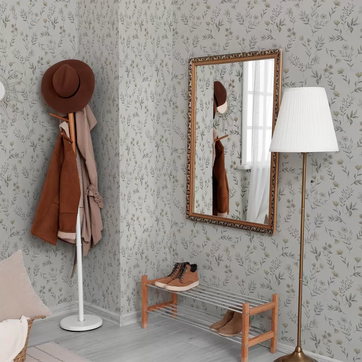 Tapet Ramuri și flori mici pictate în acuarelă pe un fundal deschis Nr. a00665