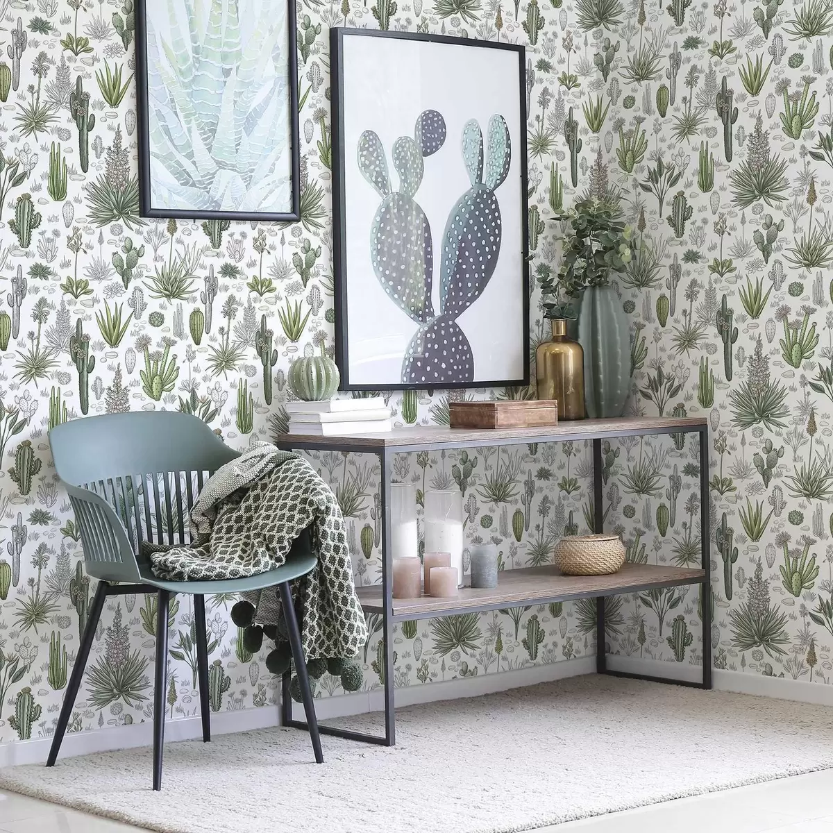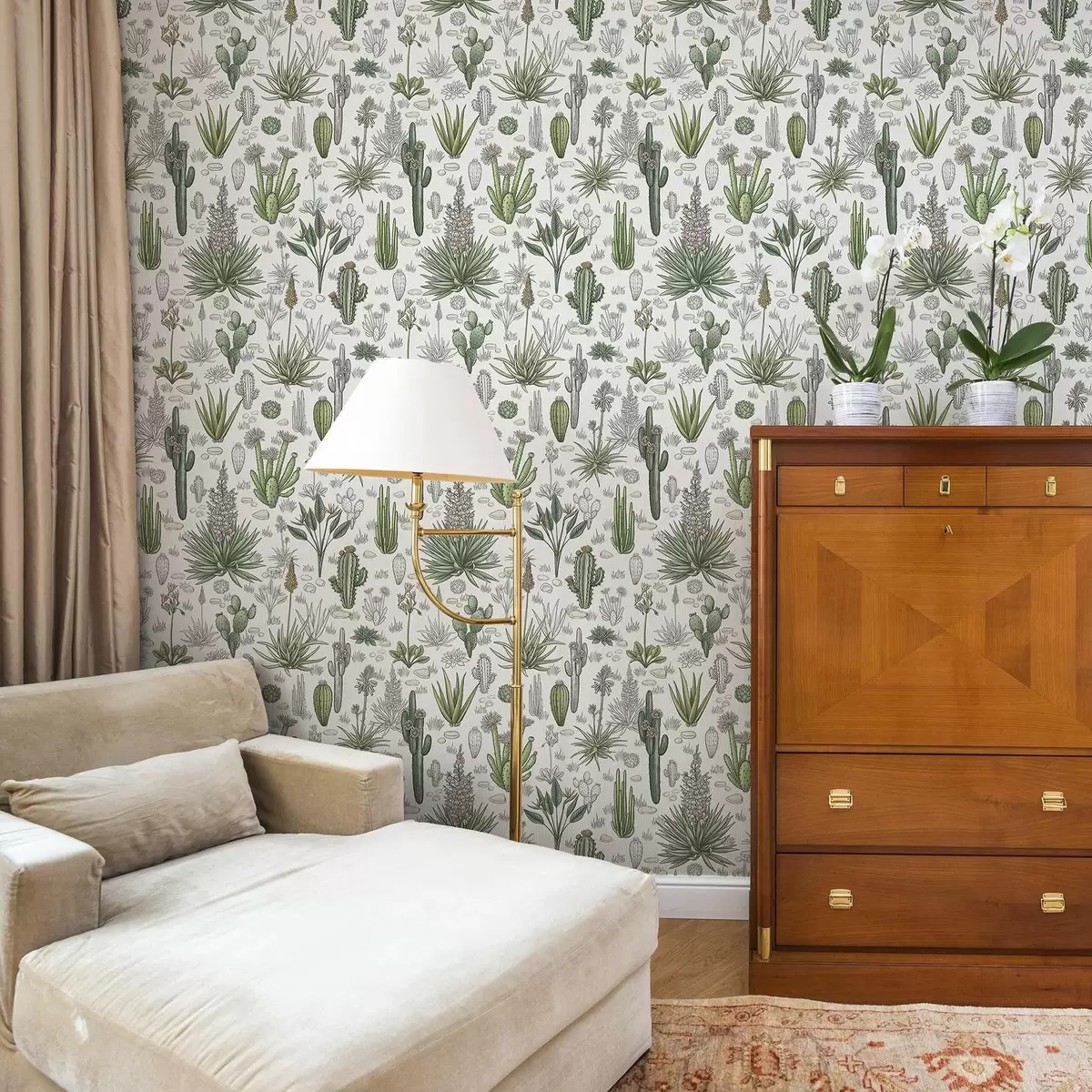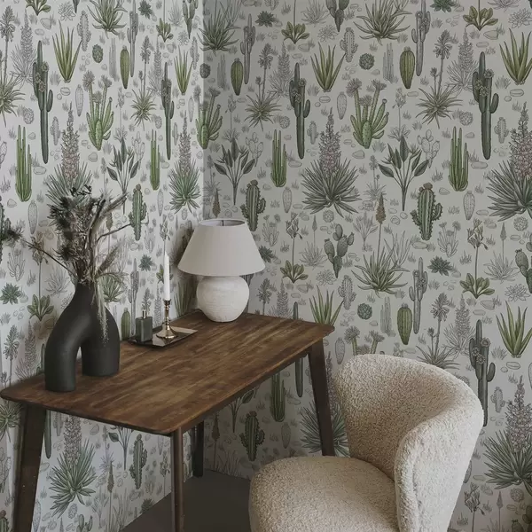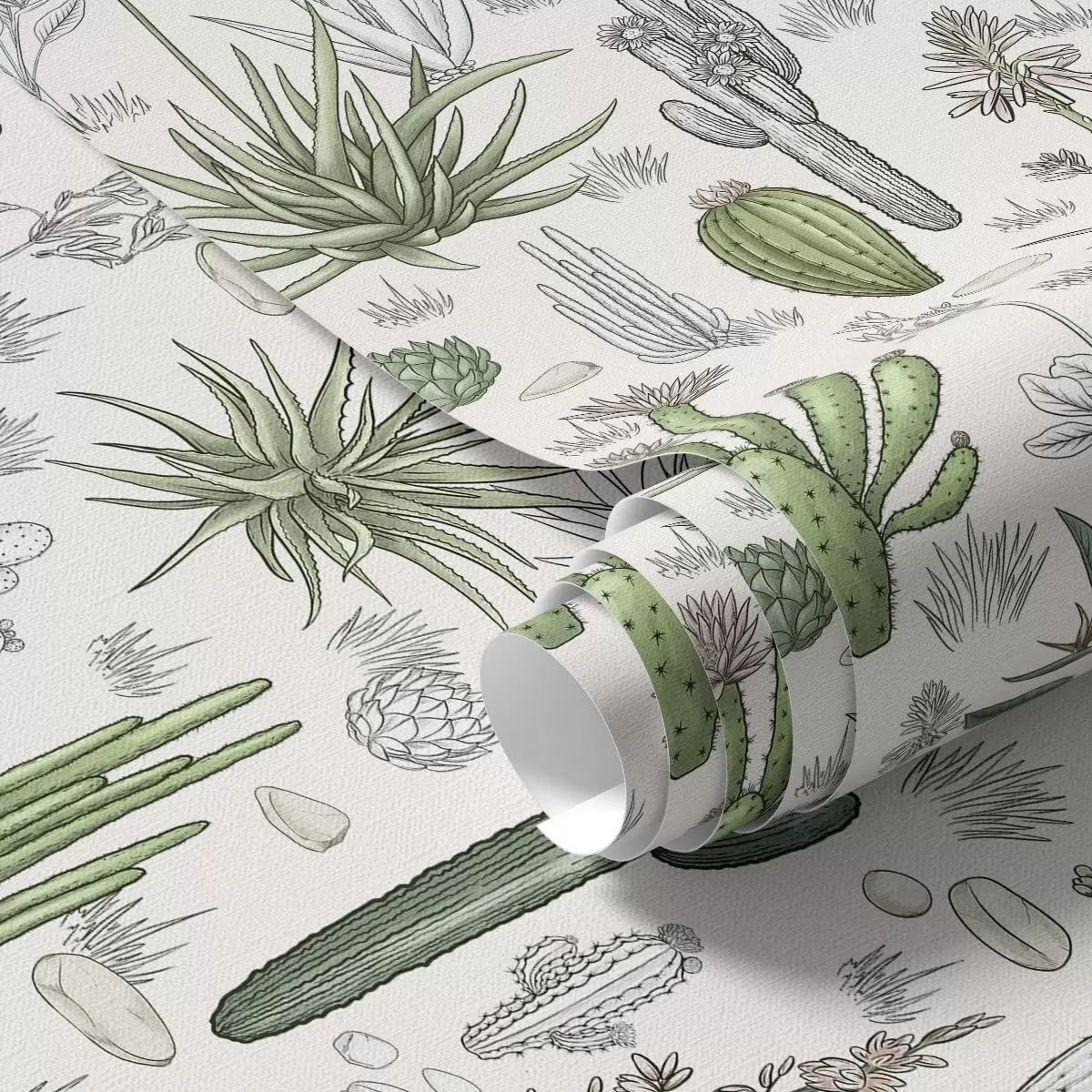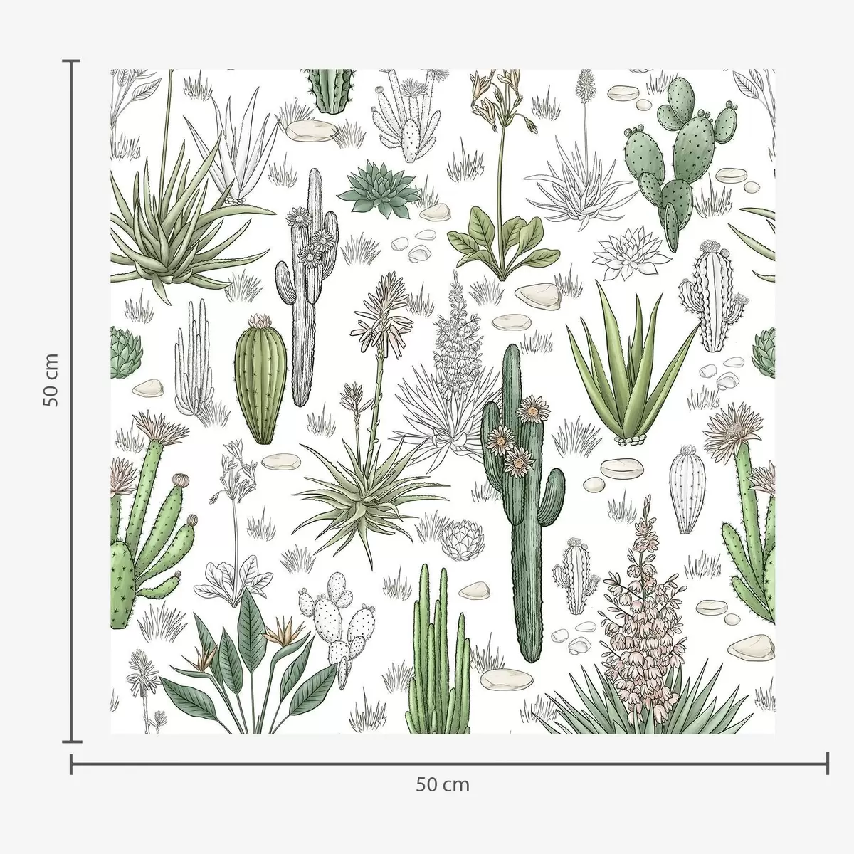 Tapet Cactuși și plante suculente pe un fundal deschis, stil liniar Nr. a00666v1