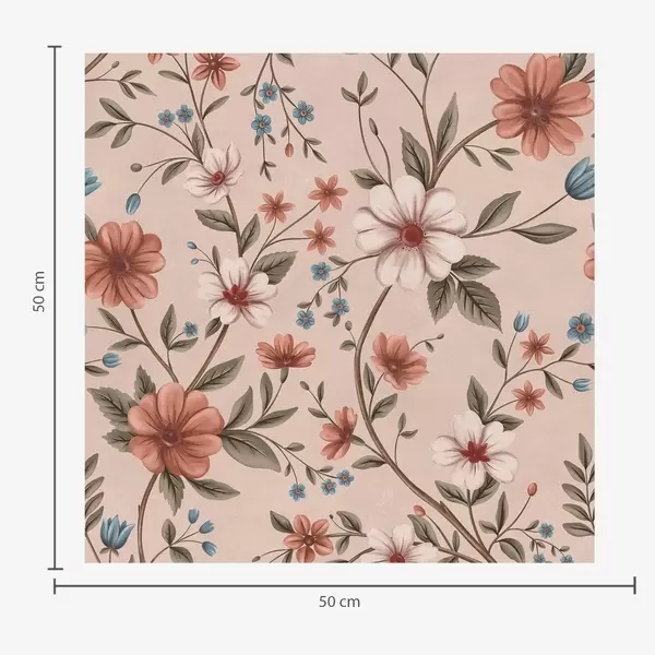 Tapet Flori și frunze de culoare roz-coral pe fond roz prăfuit Nr. a00667