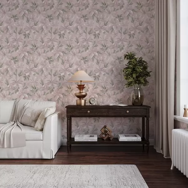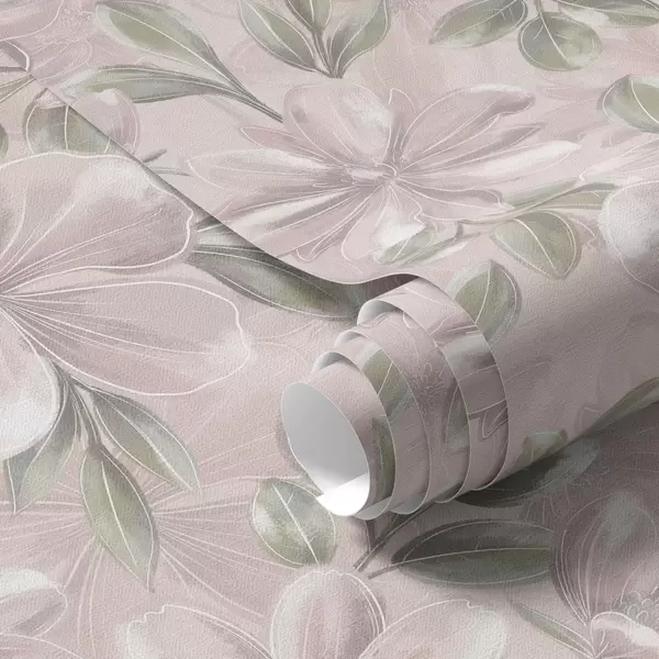 Tapet Flori roz cu frunze delicate pe un fundal delicat Nr. a00675