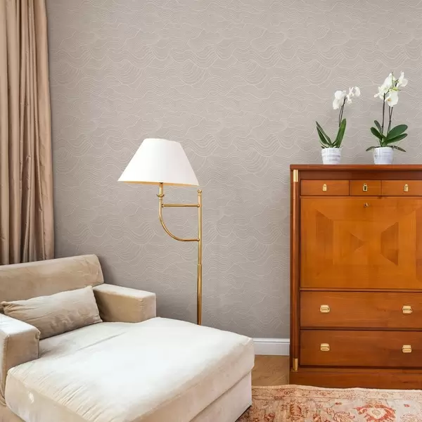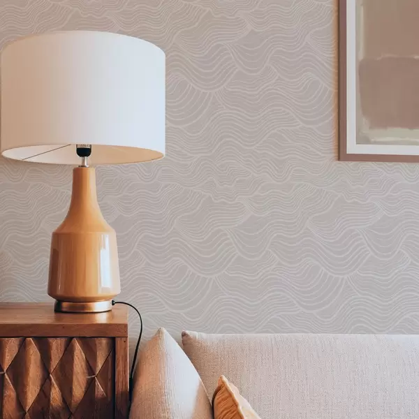 Wallpaper Linii ondulate ton pe ton pe fond bej cald a00681v1