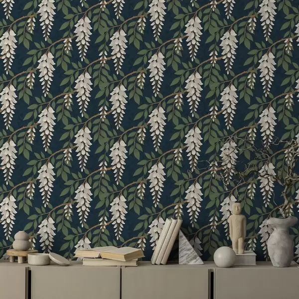 Tapet Glicină de culoare fildeș pe un fundal verde-albăstrui intens Nr. a00694v1