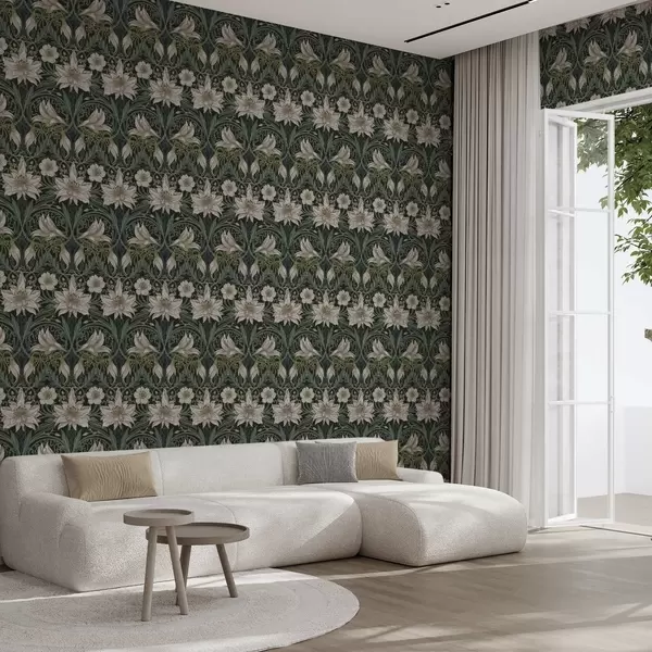 Tapet Compoziție Art Nouveau cu crini pe fundal întunecat Nr. a00696