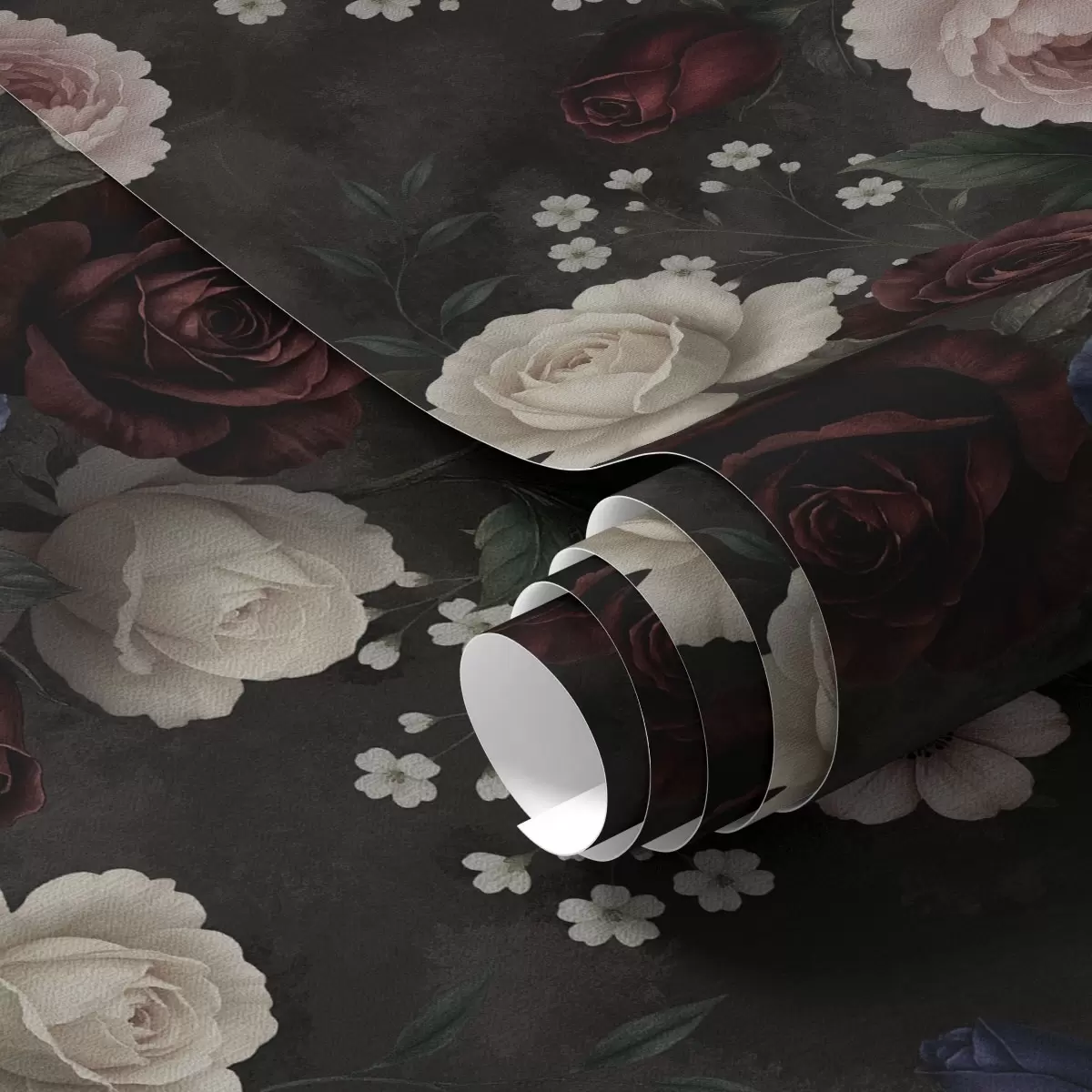 Tapet Trandafiri negri, anemone și bujori pe un fundal intens Nr. a00704