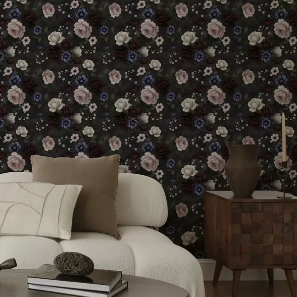 Wallpaper Trandafiri negri, anemone și bujori pe un fundal intens a00704