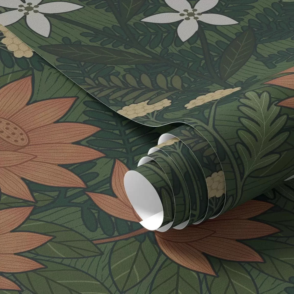 Tapet Flori mari printre frunzișul verde, compoziție decorativă Nr. a00708