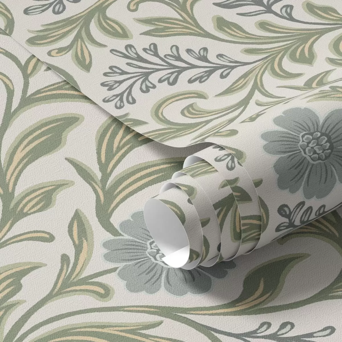 Tapet Ornament floral gri-salvie pe fond deschis Nr. a00712