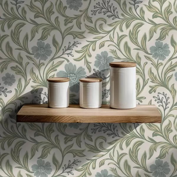 Tapet Ornament floral gri-salvie pe fond deschis Nr. a00712