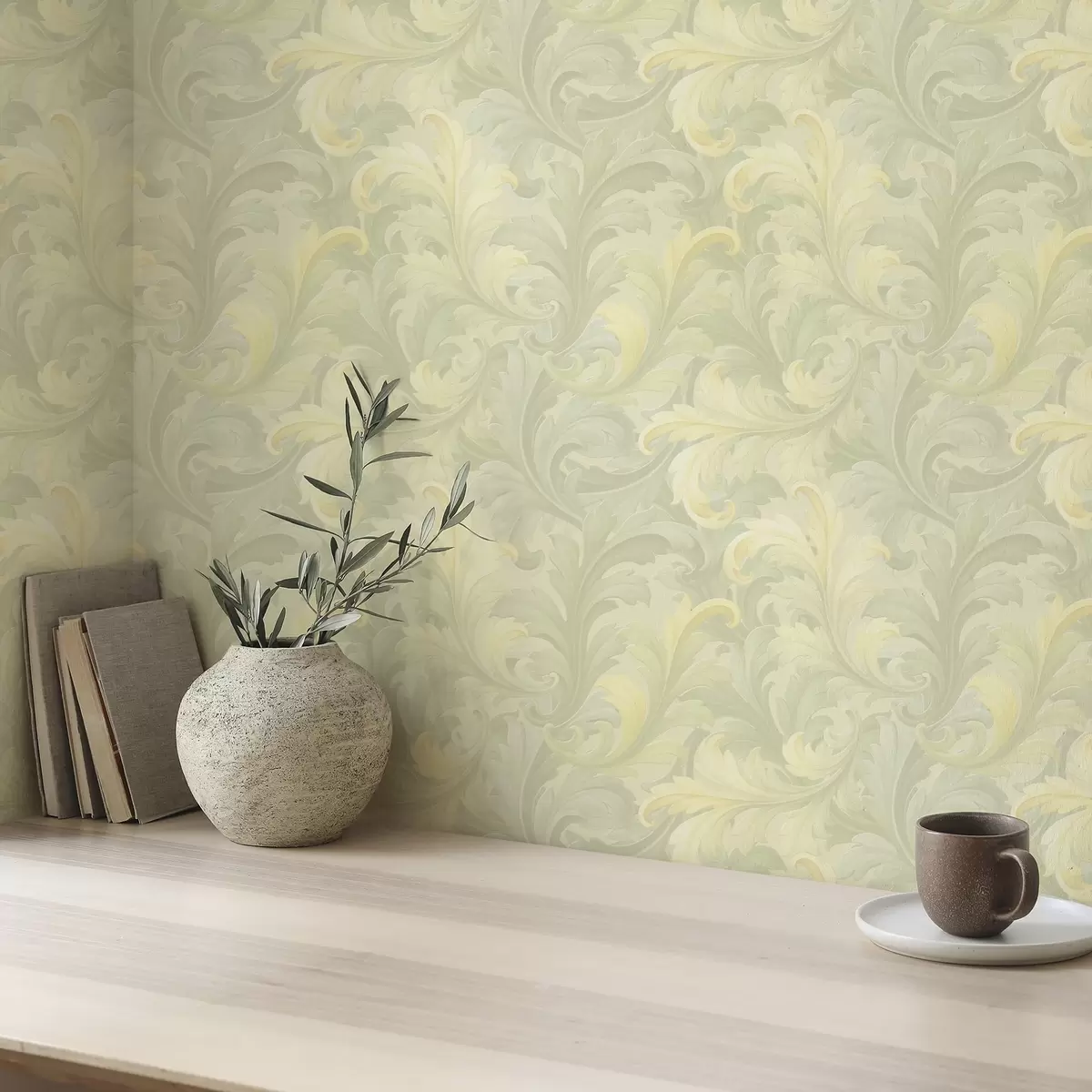 Tapet Volute baroce cu frunze de acant în nuanțe delicate Nr. a00714