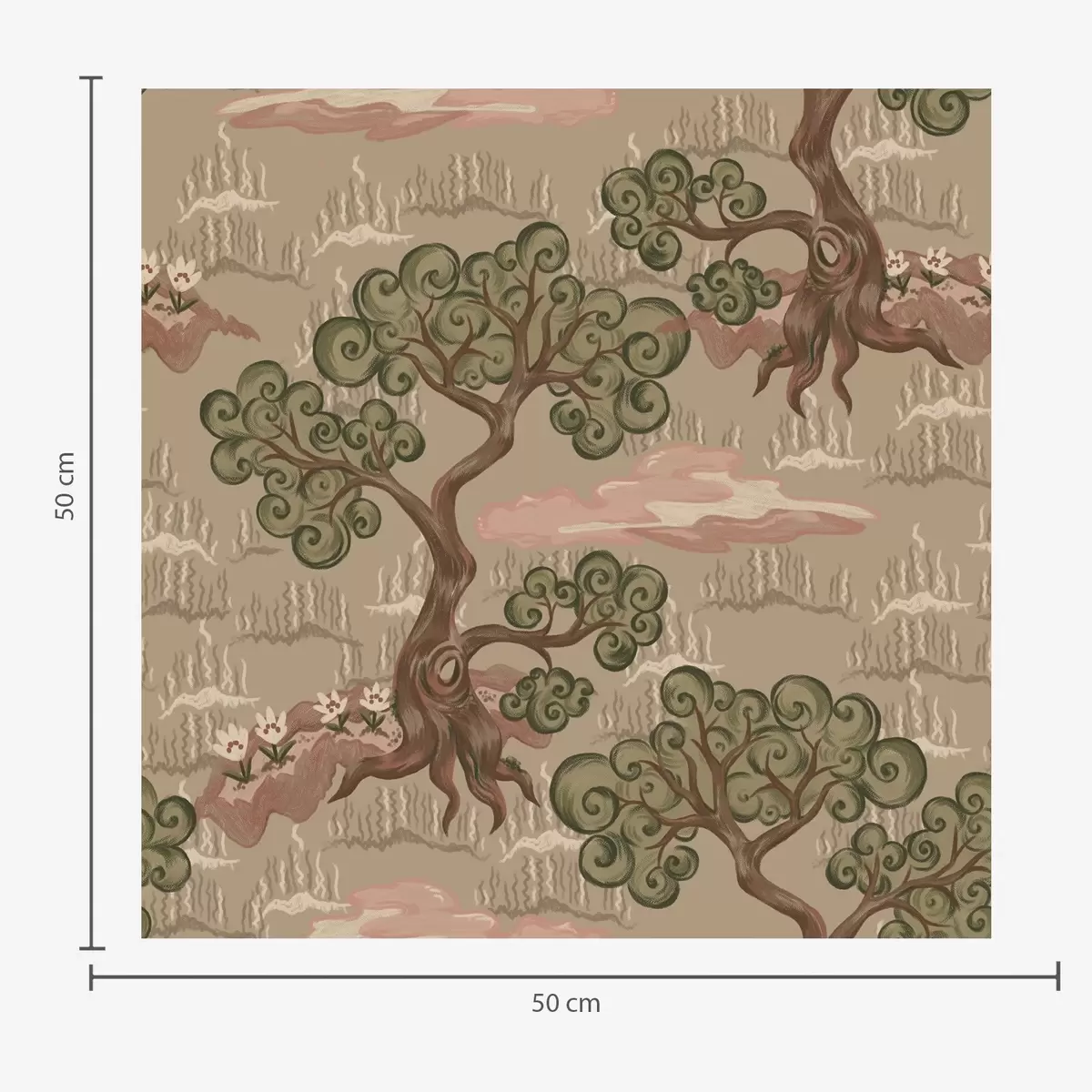 Tapet Peisaj oriental cu copaci capricioși pe un fundal nisipos Nr. a00715