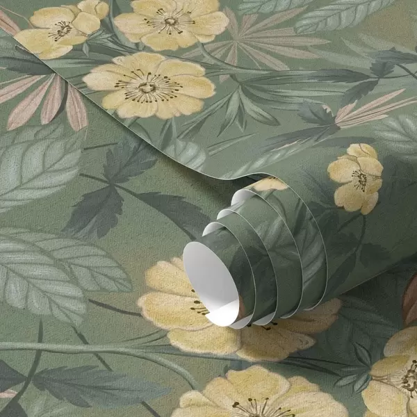 Tapet Flori galbene în mijlocul texturii frunzelor verzi Nr. a00718